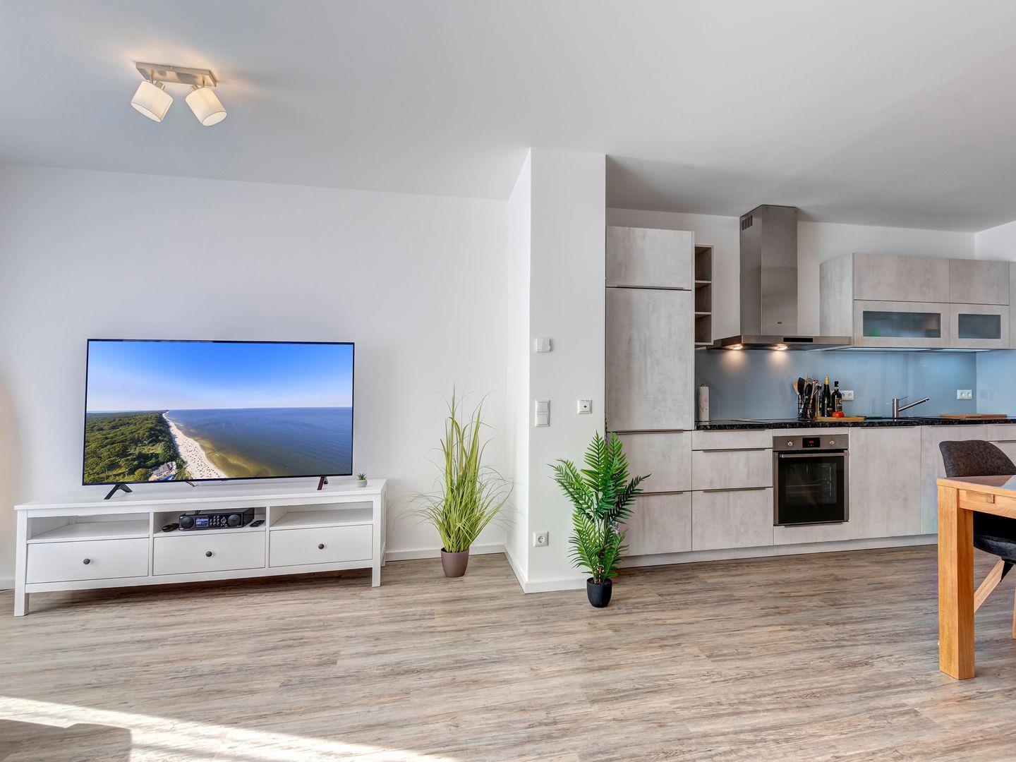 Willkommen im Ferienhaus BQ 06b Lachmöwe, wo modernster Komfort auf gemütliche Atmosphäre trifft. Das Haus liegt im neuen Bernsteinquartier von Kölpinsee, nur 800 m vom Sandstrand entfernt. Das Erdgeschoss bietet eine topmoderne Einbauküche und eine sonnige Terrasse mit Strandkorb. Im Obergeschoss befinden sich zwei Schlafzimmer für je zwei Personen. Zwei moderne Badezimmer mit bodenebenen Duschen und beleuchteten Spiegeln sorgen für zusätzlichen Komfort.