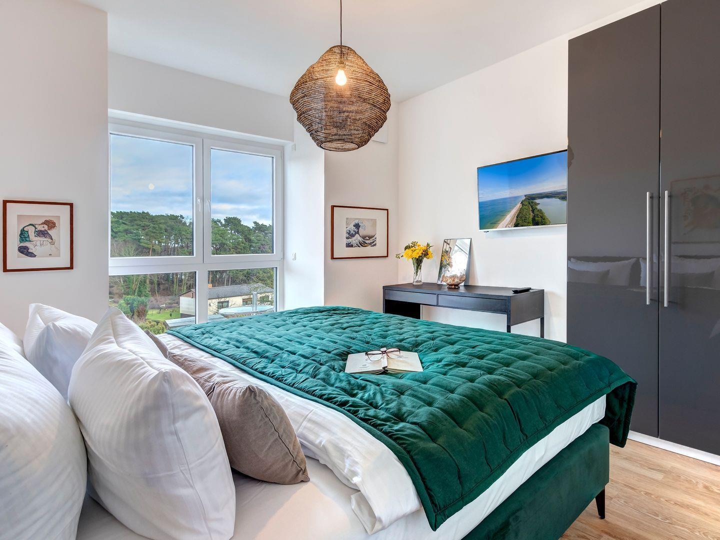 Dieses moderne Dachgeschoss-Appartement BQ 0559 in Kölpinsee bietet auf 80 qm Platz für bis zu 4 Personen. Der großzügige Wohn-/Essbereich lädt mit großer Sofalandschaft und einem runden Esstisch zum Entspannen und Genießen ein. Die voll ausgestattete Küchenzeile lässt Hobbyköche kreativ werden. Zwei Schlafzimmer mit Doppelbetten und Kleiderschränken bieten Komfort, die Badezimmer haben Walk-In-Duschen, eins auch ein Bidet. Der Balkon mit Outdoor-Sofa bietet eine herrliche Aussicht.