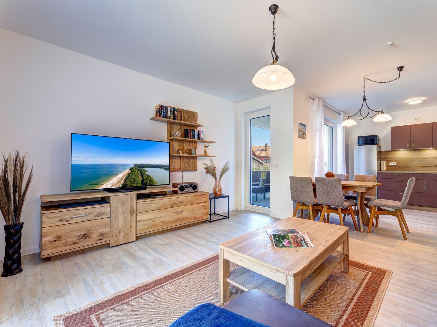 Ein idealer Rückzugsort für die ganze Familie oder eine Reisegruppe bis zu 6 Personen. 2 Schlafzimmer und ein Wohnzimmer mit offener Küche und Essbereich sowie modernes Bad mit einer Waschmaschine, bieten viel Komfort und Hochwertigkeit.
