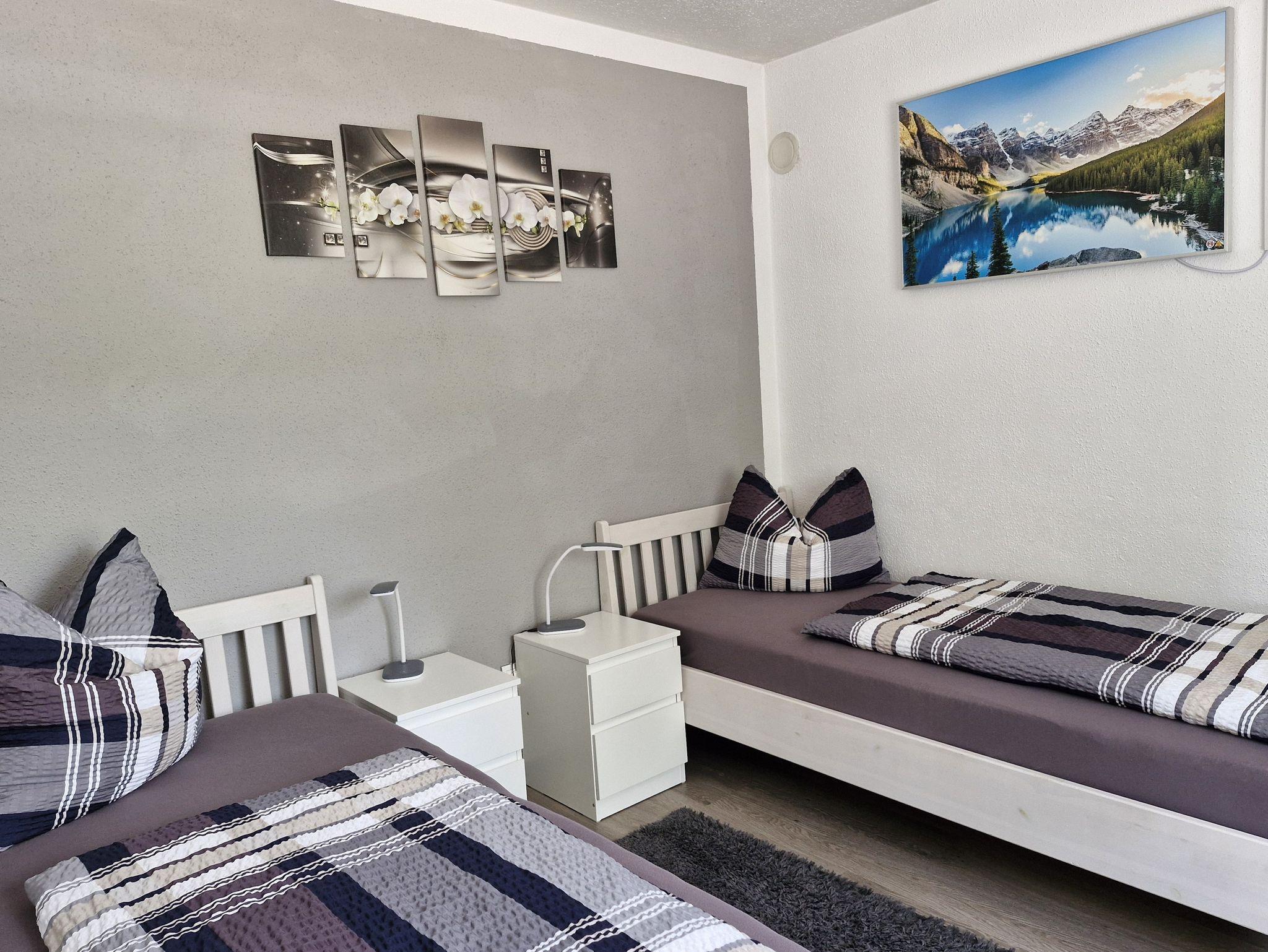 Im anderen kleineren Zimmer befinden sich zwei Einzelbetten mit je 90 cm.