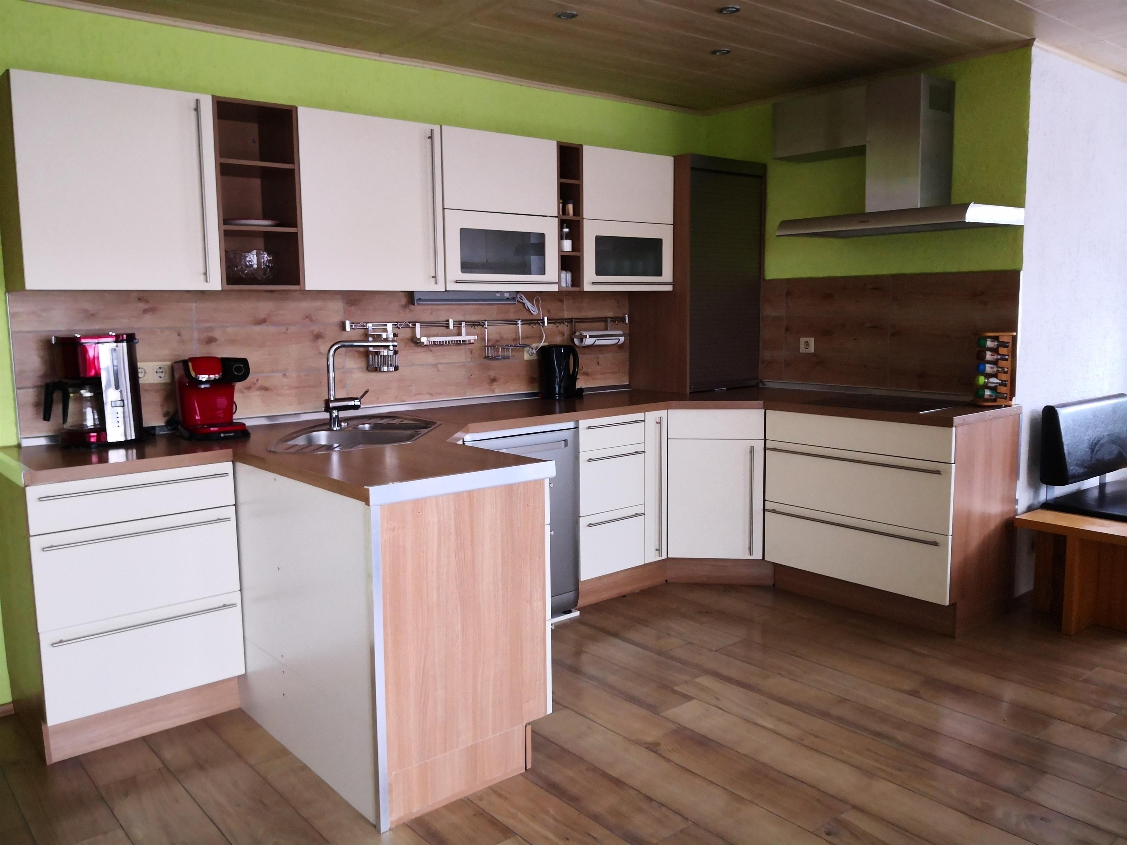 Moderne, ausgestattete Küche mit Mikrowelle, E-Herd, Spülmaschine, Kühlschrank mit Gefrierteil, Toaster, Wasserkocher, Eierkocher, Brotschneidmaschine, Gewürzen, Bosch-Tassimo, Kaffeemaschine und Essecke für 10 Personen.