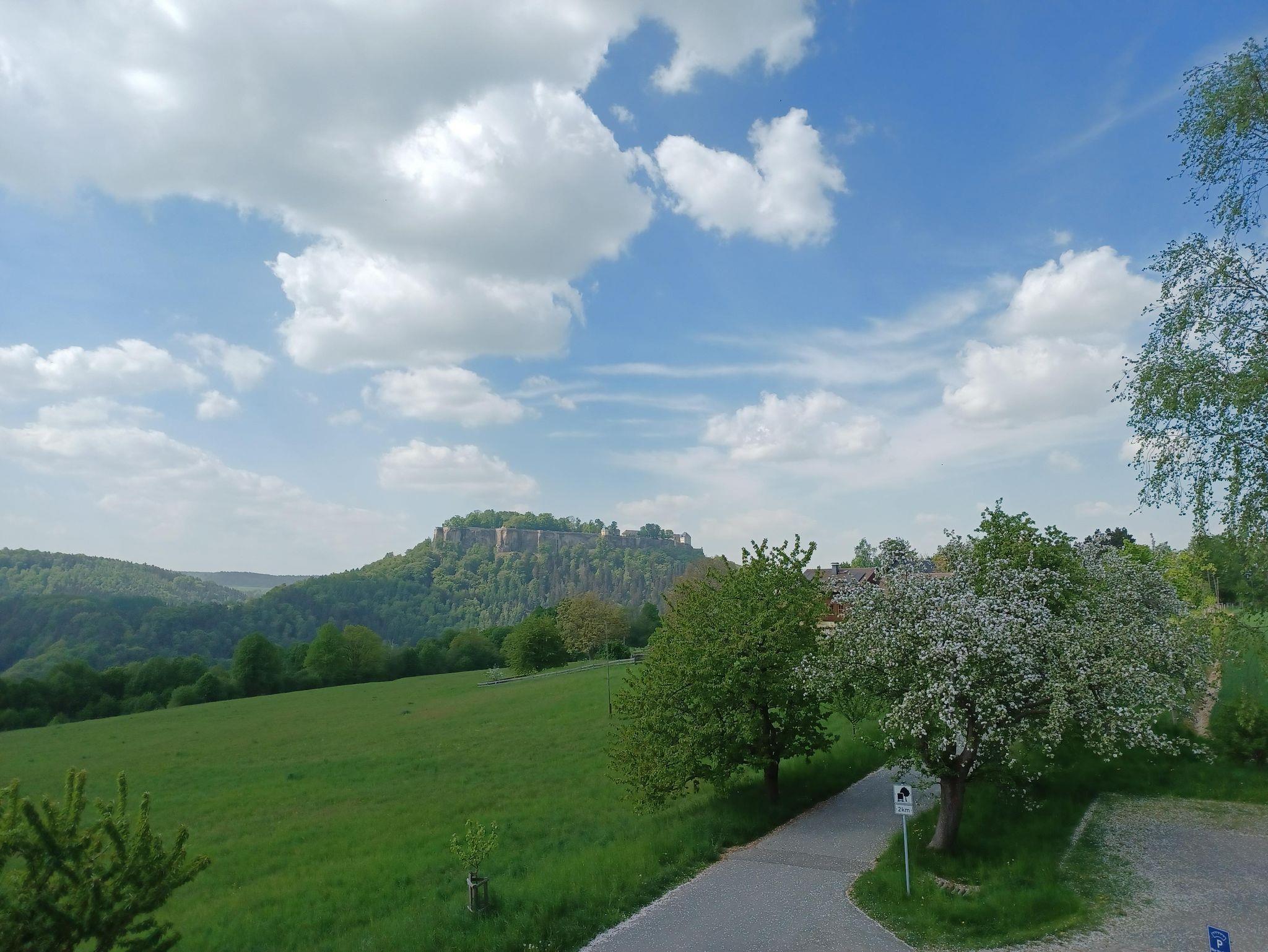 Der Ferienhof Schönfelder liegt mitten in einer Elbschleife, auf der Höhe, am Fuße des Liliensteins. Der Panoramablick von unseren Terrassen über das Elbtal auf die Festung Königstein, bietet Ihnen ein unvergessliches Erlebnis. Hier ist ein idealer Ausgangspunkt für Ihre Wanderungen.