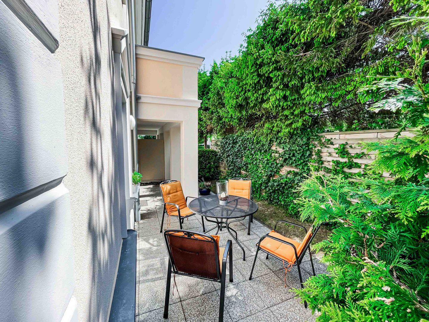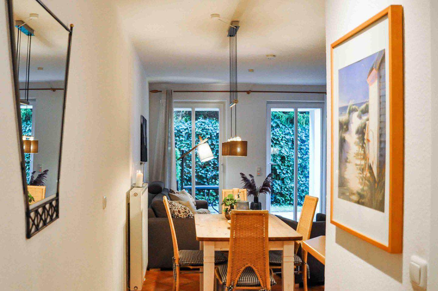 Die Ferienwohnung Poseidon in der Residenz Störtebeker bietet auf 56 m² ein komfortables Urlaubsdomizil für bis zu 4 Personen, nur wenige Minuten vom Strand entfernt. Im Erdgeschoss gelegen, überzeugt sie mit heller Wohnatmosphäre, bodentiefen Fenstern und sonniger Südterrasse. Zwei separate Schlafzimmer sorgen für erholsame Nächte. Pantryküche, modernes Duschbad, WLAN, Smart-TV, eigener Eingang und privater Parkplatz inklusive – ideal für entspannte Urlaubstage in Kühlungsborn-West.