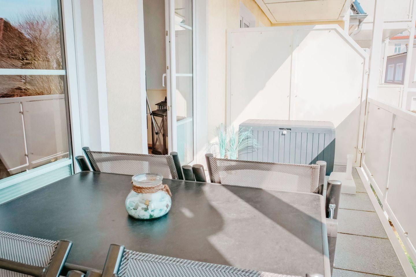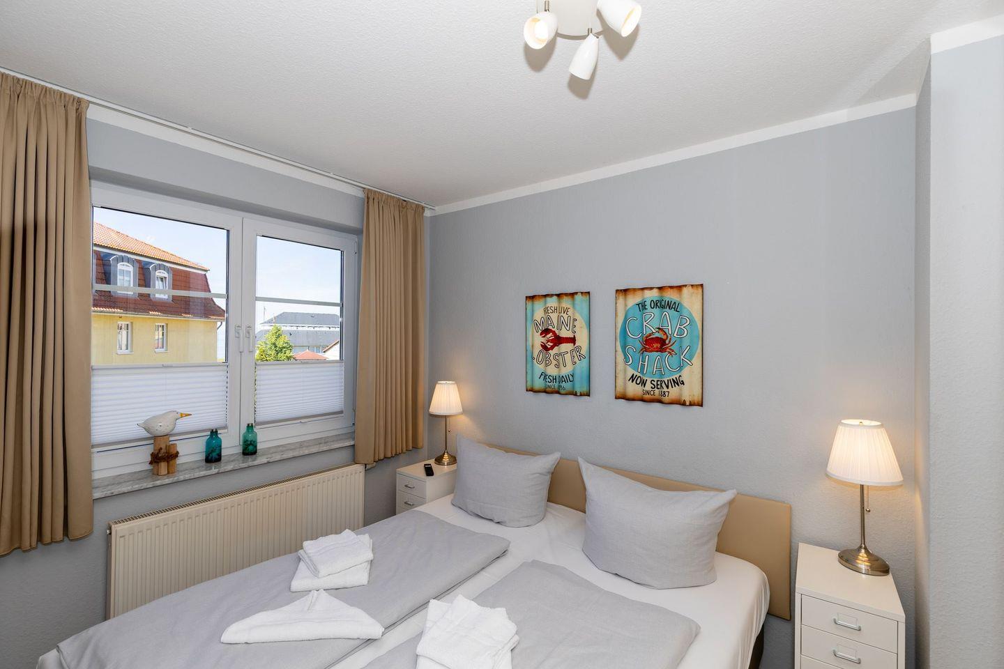 Im separaten Schlafzimmer verspricht das große Doppelbett erholsame Nächte. Die Wohnung ist ruhig gelegen, aber nur einen Steinwurf vom Meer entfernt – genießen Sie Ihre morgendlichen Spaziergänge am Strand oder das Treiben am nahegelegenen Baltic-Platz mit seinen Cafés, Boutiquen und Restaurants.