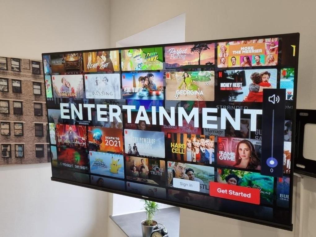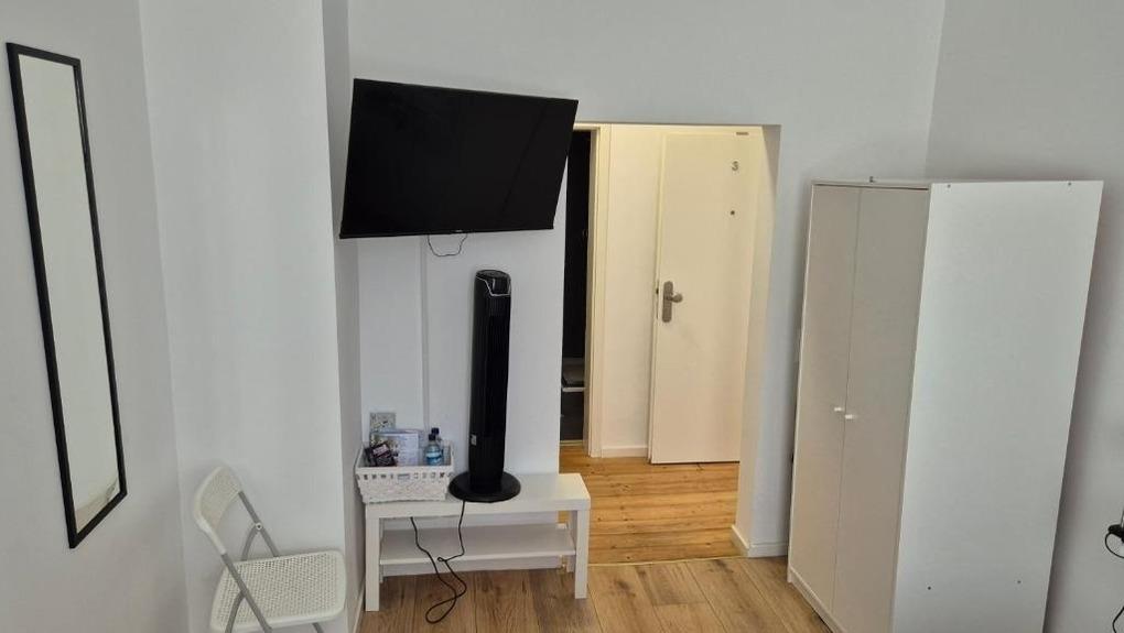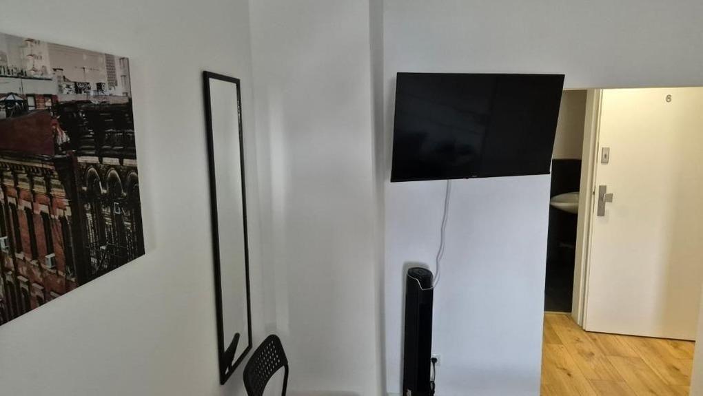 Herzlich willkommen in diesem komfortablen Apartment! Diese stilvoll eingerichtete Unterkunft bietet Ihnen ein besonders bequemes Doppelbett für eine erholsame Nachtruhe. Ihr privates Badezimmer ist mit kostenfreien Pflegeprodukten, flauschigen Bademänteln, Haartrockner und Hausschuhen ausgestattet. Die voll ausgestattete Gemeinschaftsküche lässt keine Wünsche offen: Herd, Kühlschrank, Backofen und alle notwendigen Utensilien sind vorhanden. Entspannen Sie sich vor dem Flachbild-TV mit Streaming-Diensten oder genießen Sie die Aussicht auf die Stadt und Sehenswürdigkeiten. Weitere Annehmlichkeiten umfassen eine Waschmaschine, ein Bügeleisen und einen Esstisch. Dieses Zimmer bietet Ihnen sowohl Komfort als auch Bequemlichkeit für einen unvergesslichen Aufenthalt.