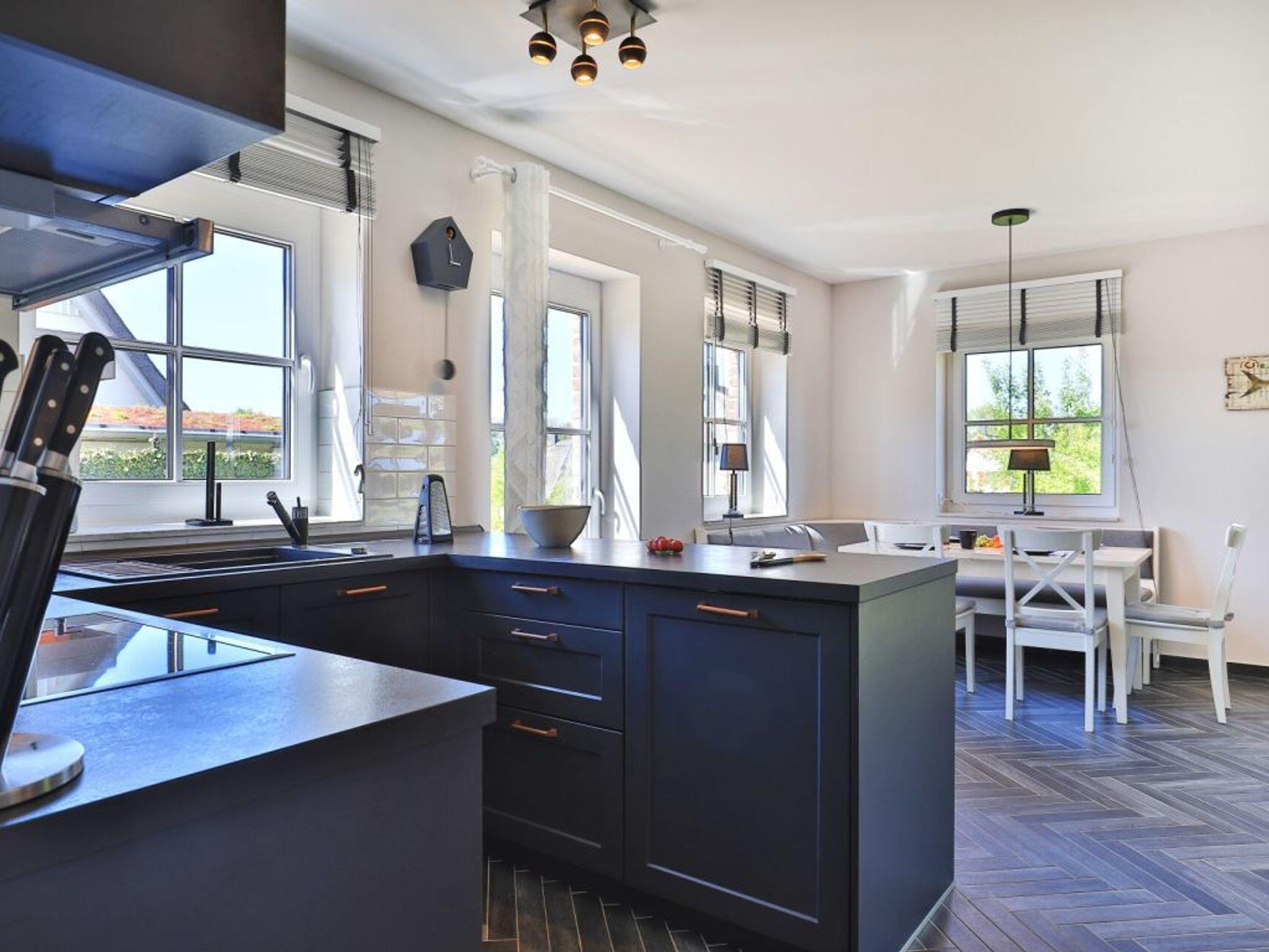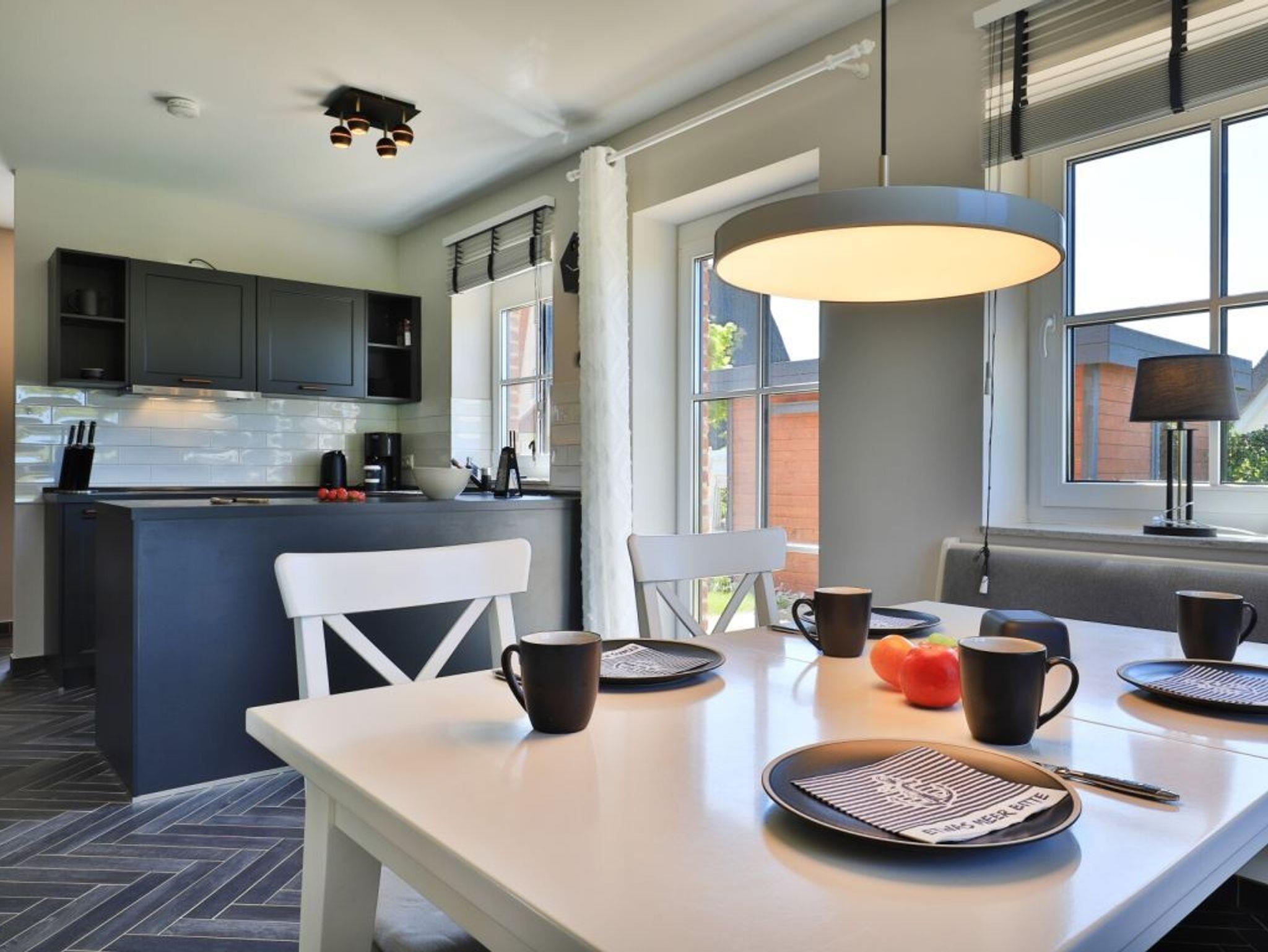 Nur 800 Meter zum Meer liegt das exklusive 4- Zimmer Ferienhaus Jolle mit großer, saisonal möblierter Terrasse und Gartennutzung. Auf einer Wohnfläche von 125qm empfängt Sie mit einem großen Eingangsbereich das stylische Backstein Einzelhaus. Sie betreten sodann eine sehr geräumigen Wohn-Essbereich indem sich eine komfortable Sofalandschaft, Flatscreen, Side Bord, Esstisch mit Sitzbank befinden. Den Internetzugang über WLAN können Sie kostenfrei nutzen. Integriert ist eine Top moderne, offene Wohnküche, welche voll ausgestattet ist mit Ceranfeldherd, Backofen, Mikrowelle, Wasserkocher, Toaster, Kaffeemaschine usw. Des Weiteren befindet sich auf der Wohnebene ein Gäste -WC mit Fenster Belüftung. Über eine Treppe gelangen Sie in das Obergeschoss des familienfreundlichen Hauses, wo sich drei separate Schlafzimmer befinden. 1x mit Doppelbett und Kleiderschrank. 1x mit Doppelbett, Kleiderschrank und TV-Gerät. 1x mit zwei Einzelbetten, Kleiderschrank und TV-Gerät. Zudem ist auf dieser Ebene auch ein geräumiges Vollbad mit Eckbadewanne und Dusche vorhanden. Die Nutzung einer Waschmaschine ist kostenfrei. Ein Bollerwagen befindet sich im Gerätehaus, wo Sie auch Ihre mitgebrachten Fahrräder unterstellen können. Gäste mit Hund gegen Gebühr, sind in diesem Ferienobjekt herzlich willkommen. Zwei kostenfreie PKW - Außenstellplätze befinden sich direkt am Haus. Sie verbringen Ihren Aufenthalt in naturnaher Umgebung. Der Naturstrand bietet den Blick auf die Lübecker Bucht und vorbeiziehende Fähren.
