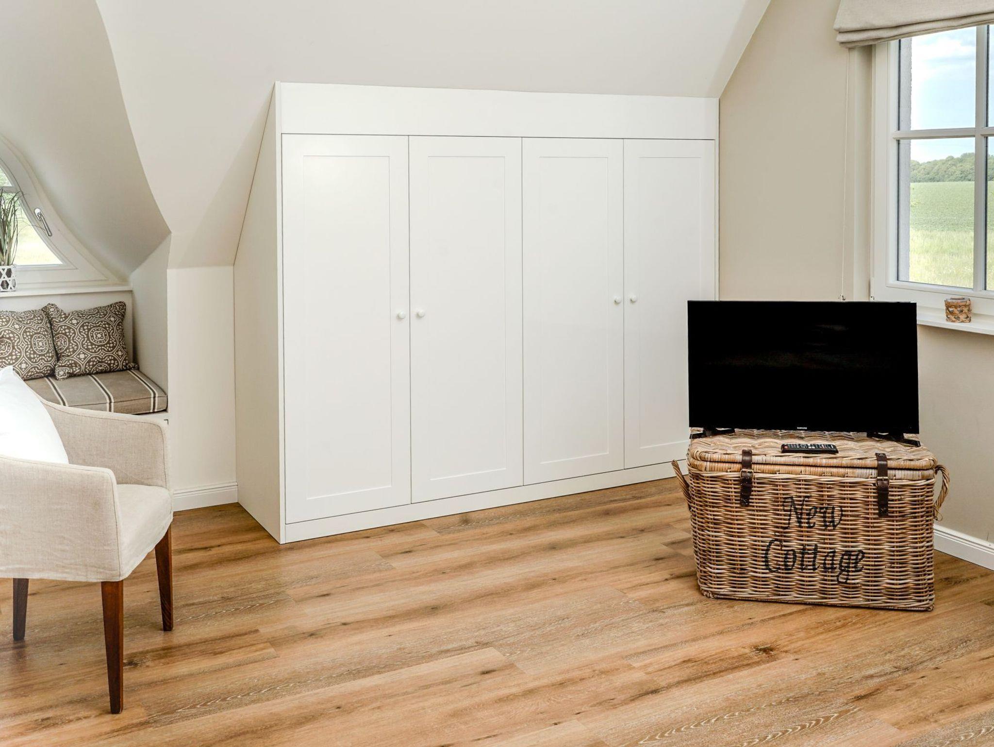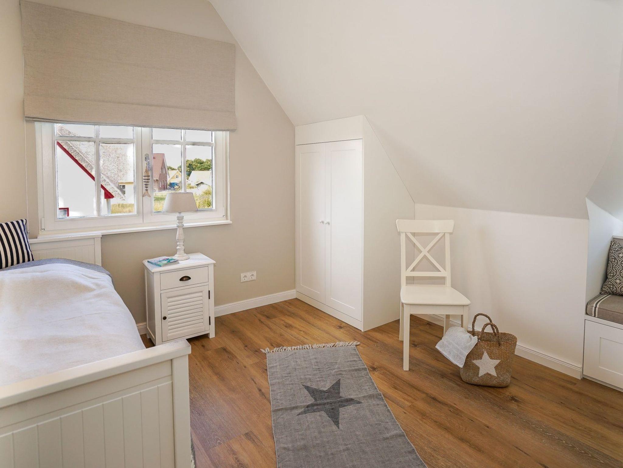 Hier befinden sich drei separate Schlafzimmer 2x mit ausziehbarem Einzelbett und Kleiderschrank, 1x mit Doppel Boxspringbett sowie SMART ? TV, Kleiderschrank und Sitzecke. Ein zweites Badezimmer mit Dusche und Badewanne befindet sich ebenso im Obergeschoss des Hauses. Das gesamte Haus ist mit einer Fußbodenheizung ausgestattet.