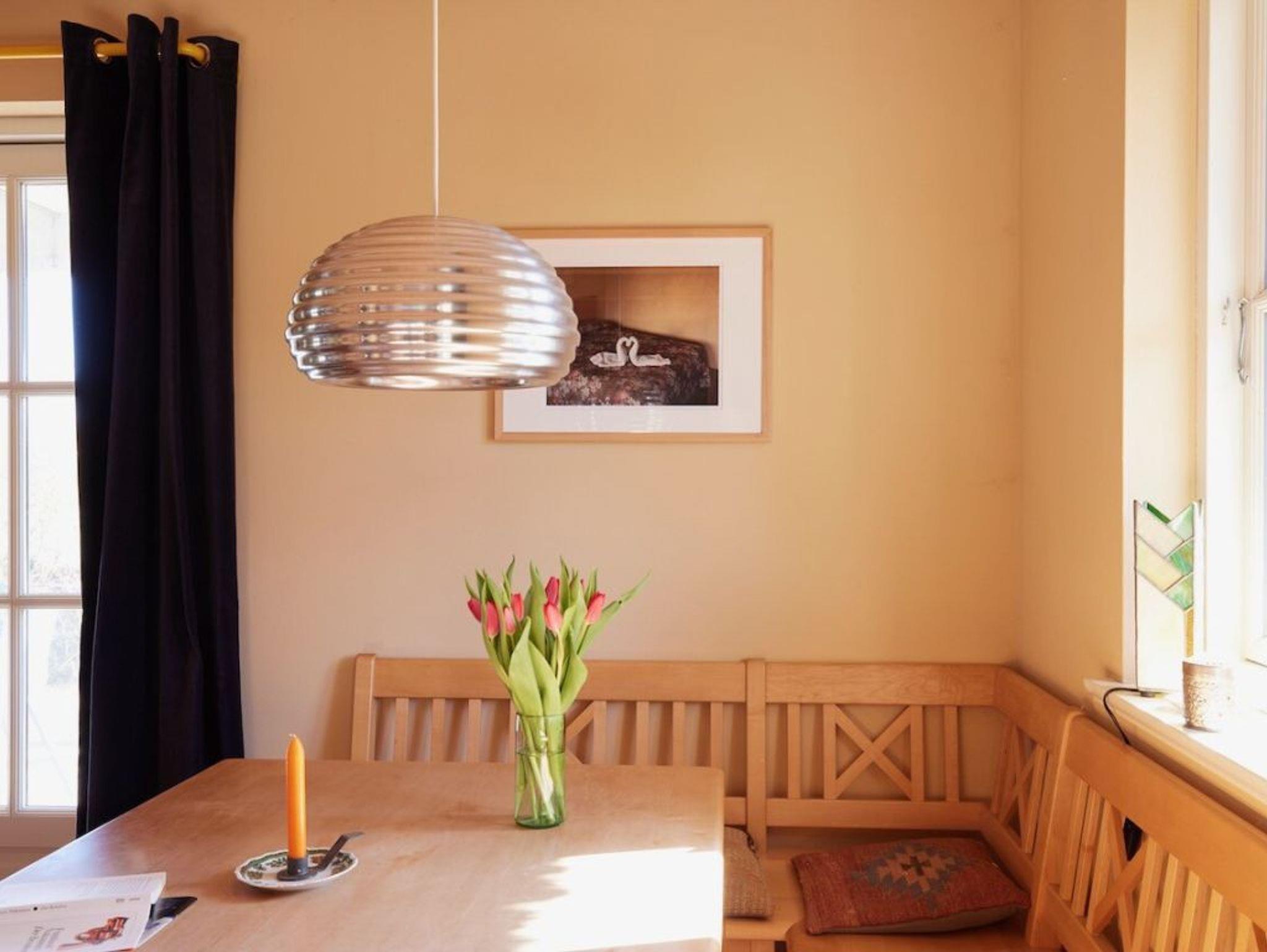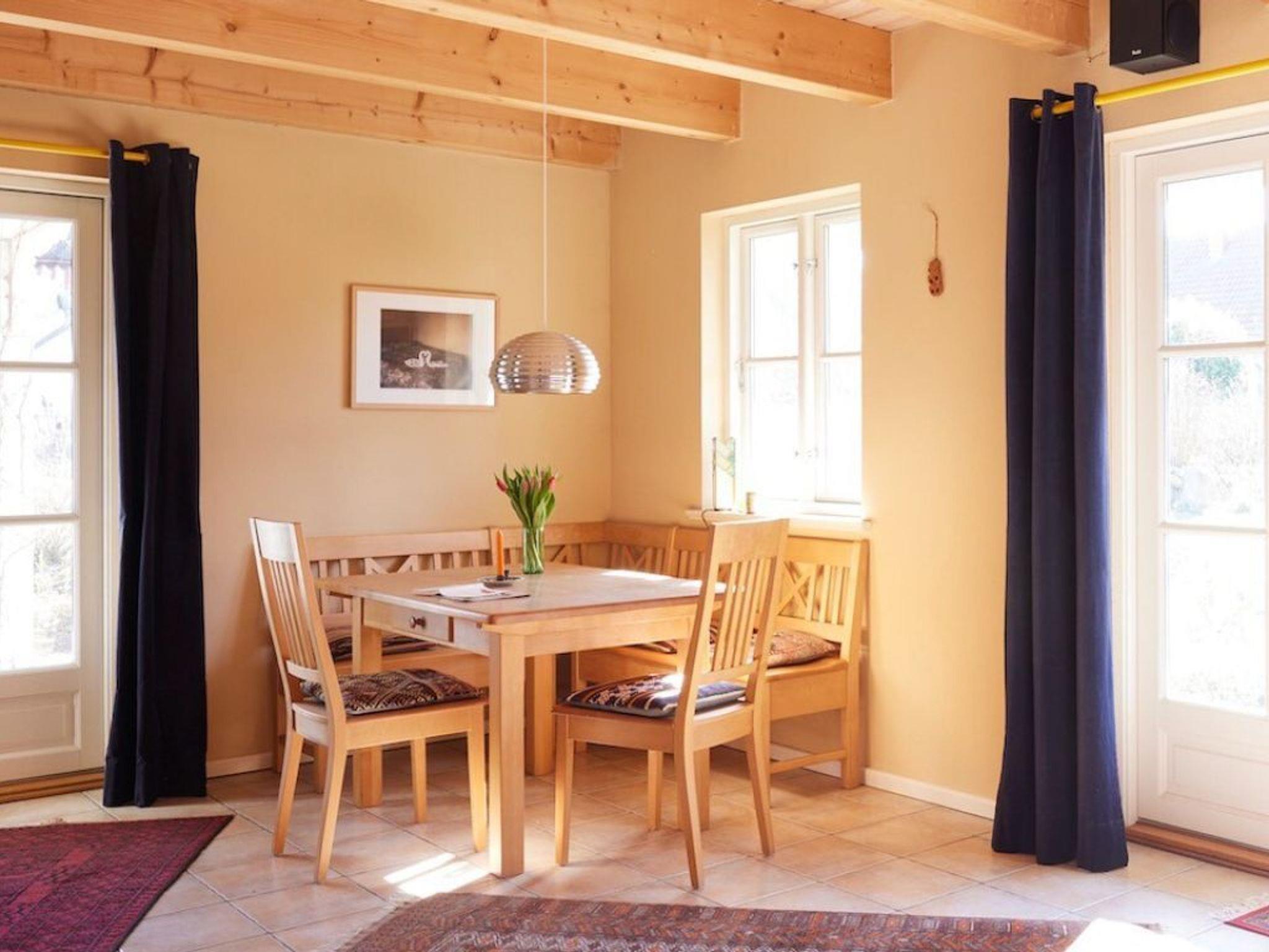 Mit einer Wohnfläche von 127qm ist dieses großzügige Ferienhaus unter Reet für eine Belegung mit bis zu 5 Personen nahezu perfekt. In nur 800 Meter gelangen Sie zum wunderschönen Strand mit guten Bademöglichkeiten. Das sehr hochwertig eingerichtete Einzelhaus erstreckt sich über zwei Etagen. Im Erdgeschoss, welches sich mit einem großflächigen Eingangsbereich präsentiert erwarten Sie sehr einladend möblierte Zimmer. Der behagliche Wohn-/Essbereich mit bequemer Couch und dem großen Esstisch, bietet Ihnen einen Kaminofen für wohlige Wärme. Kaminholz ist vorhanden. Selbstverständlich befinden sich auch ein TV-Gerät, DVD und Musikanlage im Wohnzimmer. Die familienfreundliche Ausstattung beinhaltet einen Kinderhochstuhl. Hochwertig ist die Küche, die geschickt in den Wohnraum integriert wurde. Zwei Terrassen, wovon eine überdacht ist, sind von der Küche und vom Wohnzimmer aus zu betreten. Somit können Sie im Sommer Ihre Mahlzeiten im Freien genießen und sich wunderbar entspannen. Der hübsch angelegte Garten lädt zum Sonnenbaden und Spielen ein. Außerdem befinden sich im Erdgeschoss des Hauses ein Arbeitszimmer wie auch ein gehoben gefliestes Duschbad. Im Hauswirtschaftsraum ist die Nutzung von Waschmaschine und Wäschetrockner gegeben. Über eine Holztreppe gelangen Sie in das Obergeschoss, wo sich im Flurbereich ein zweiter Fernseher und eine Sitzgelegenheit befinden. Des Weiteren sind auf dieser Etage zwei Schlafzimmer mit Doppelbett, davon eines der Schlafzimmer mit Balkon, sowie ein drittes Schlafzimmer mit einem Einzelbett. Das geräumige Badezimmer besitz ein Fenster und bietet Ihnen eine Badewanne wie auch eine ebenerdige Dusche, Bidet und WC. Das gesamte Ferienobjekt wird über eine Fußbodenheizung angenehm gewärmt. Insbesondere hervorzuheben ist, dass in diesem Haus ausschließlich naturbelassene Baumaterialien verwendet wurden. Gebührenfrei nutzen Sie den PKW-Außenstellplatz am Haus. Im Fahrradschuppen direkt am Haus können Sie Ihre mitgebrachten oder geliehenen Räder sicher verwahren. Weiterhin finden Sie hier eine Wallbox für Ladekabel mit dem Steckertyp 2 (11kW) sowie eine Schuko Doppelsteckdose für Ihr E-Bikes. Eine Kaution i.H.v.200,00 Euro wird erhoben. Es handelt sich um ein Nichtraucher Domizil, in dem Haustieren nicht gestattet sind.