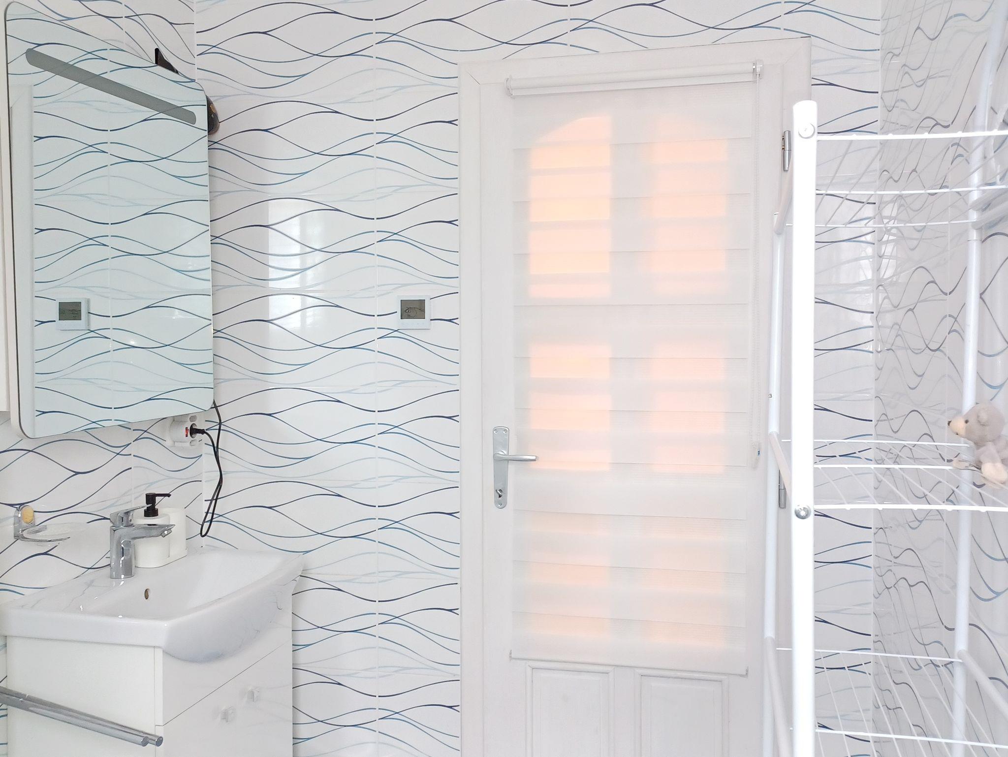 Eine Waschmaschine und ein Trockner stehen in der Diele zur Nutzung bereit. Die Ferienwohnung ist zudem ausgestattet mit zwei Bädern und einem einladenden Balkon mit schöner Aussicht auf die Juralandschaft.