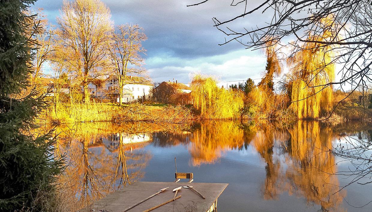 Sie wohnen an einem privaten See, im ältesten Stadtteil von Karlsruhe (Knielingen).