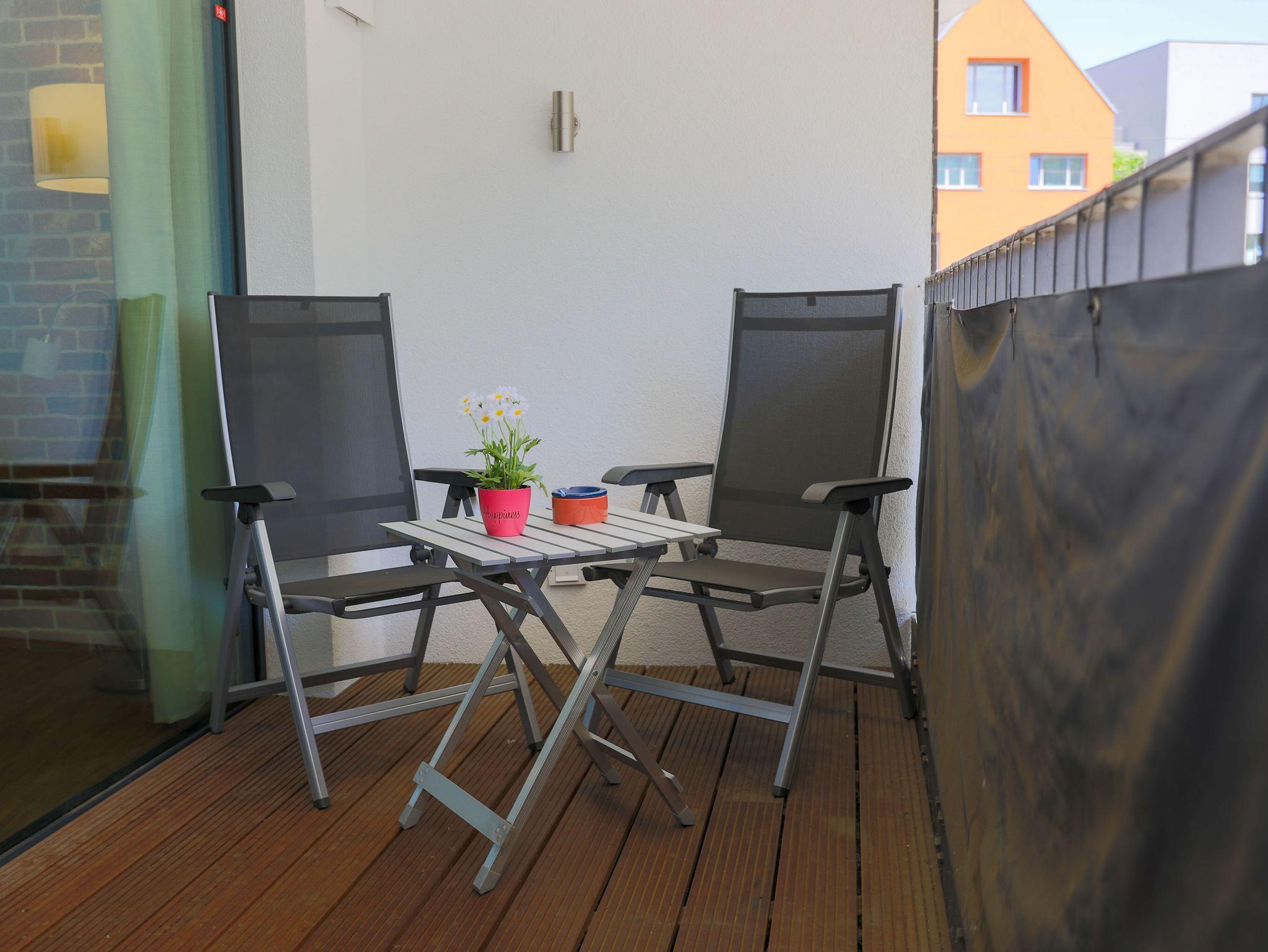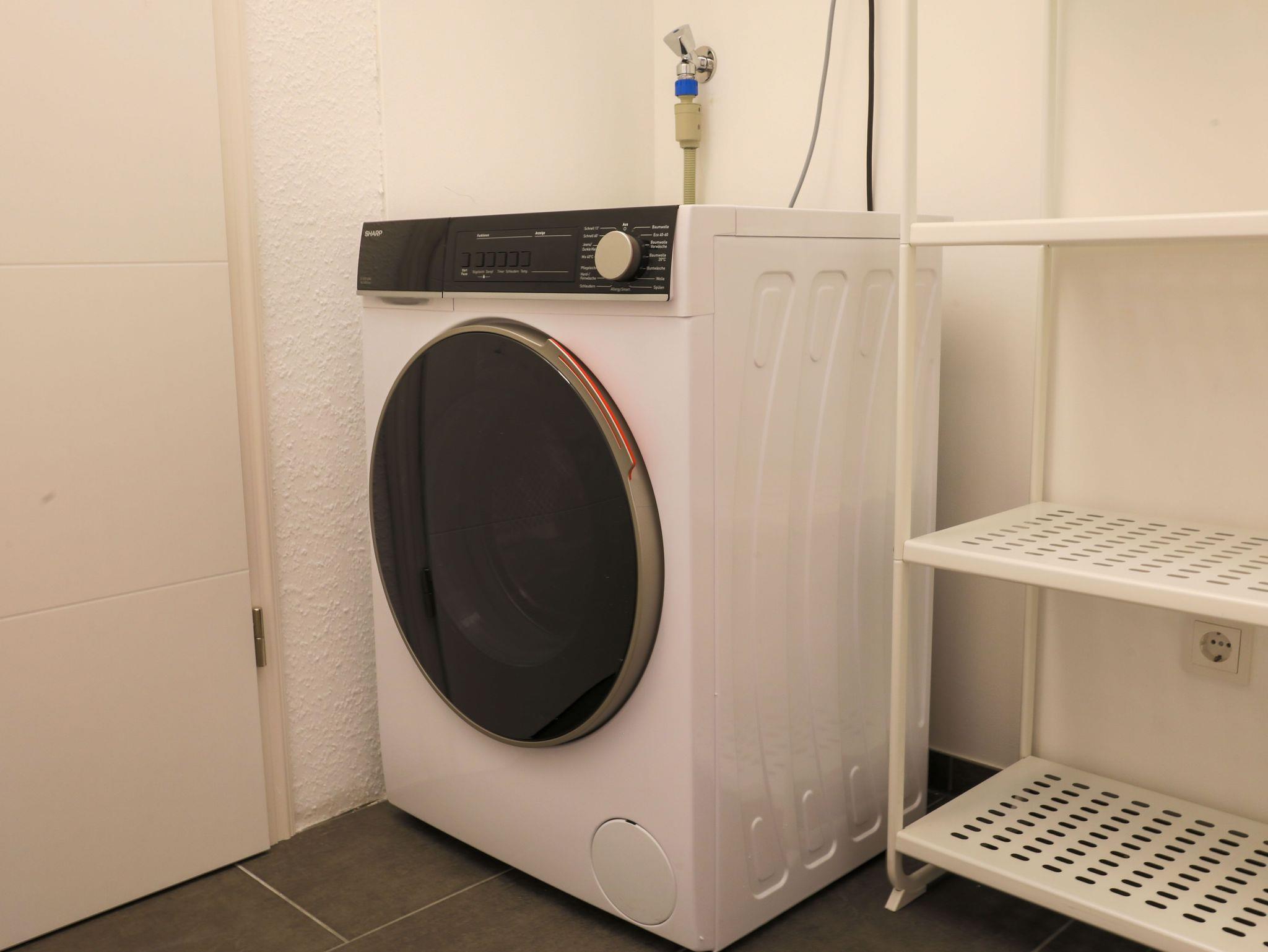 Waschmaschine und hat einen großen Balkon zum beliebten Holzmarkt und eine