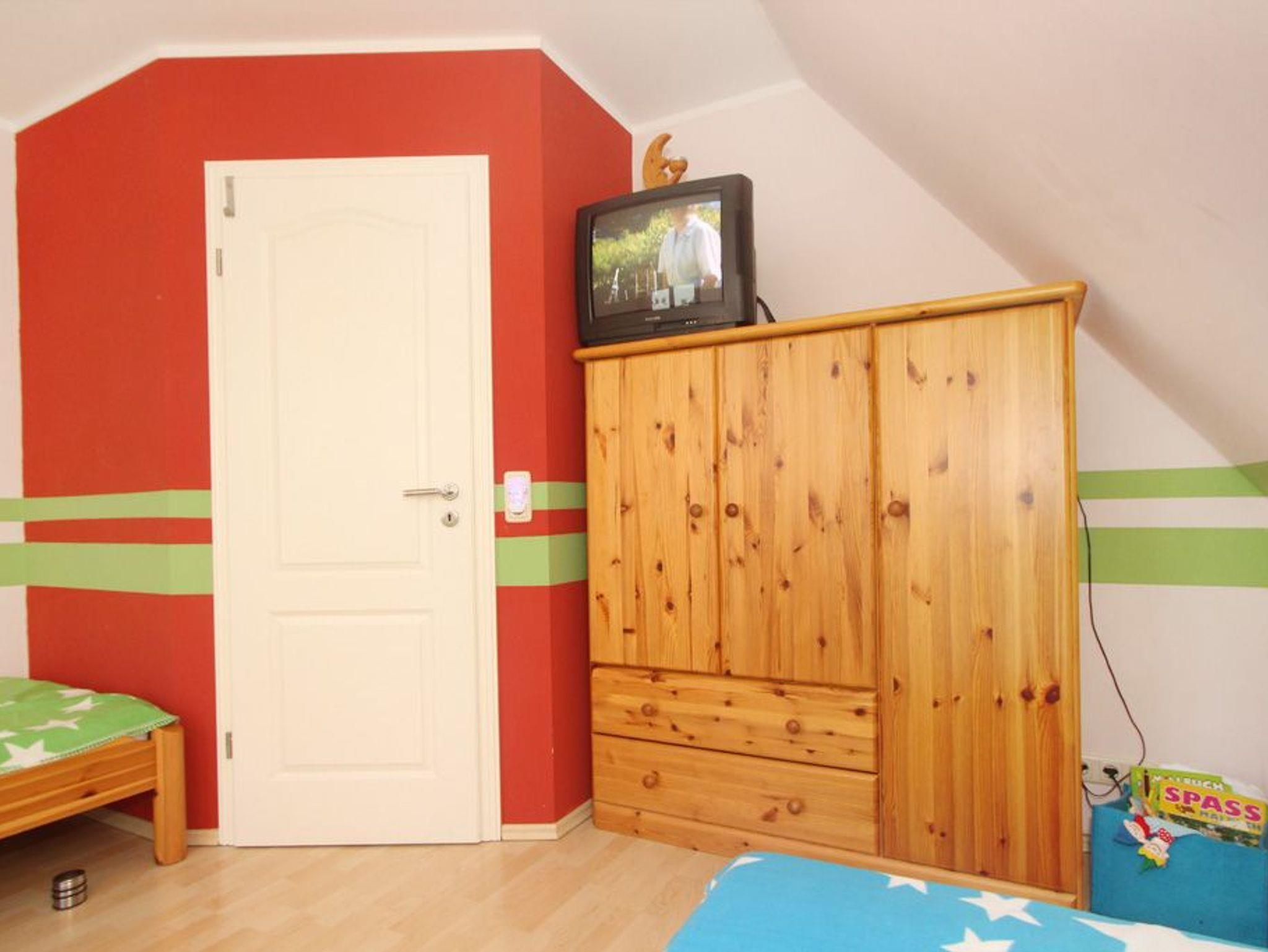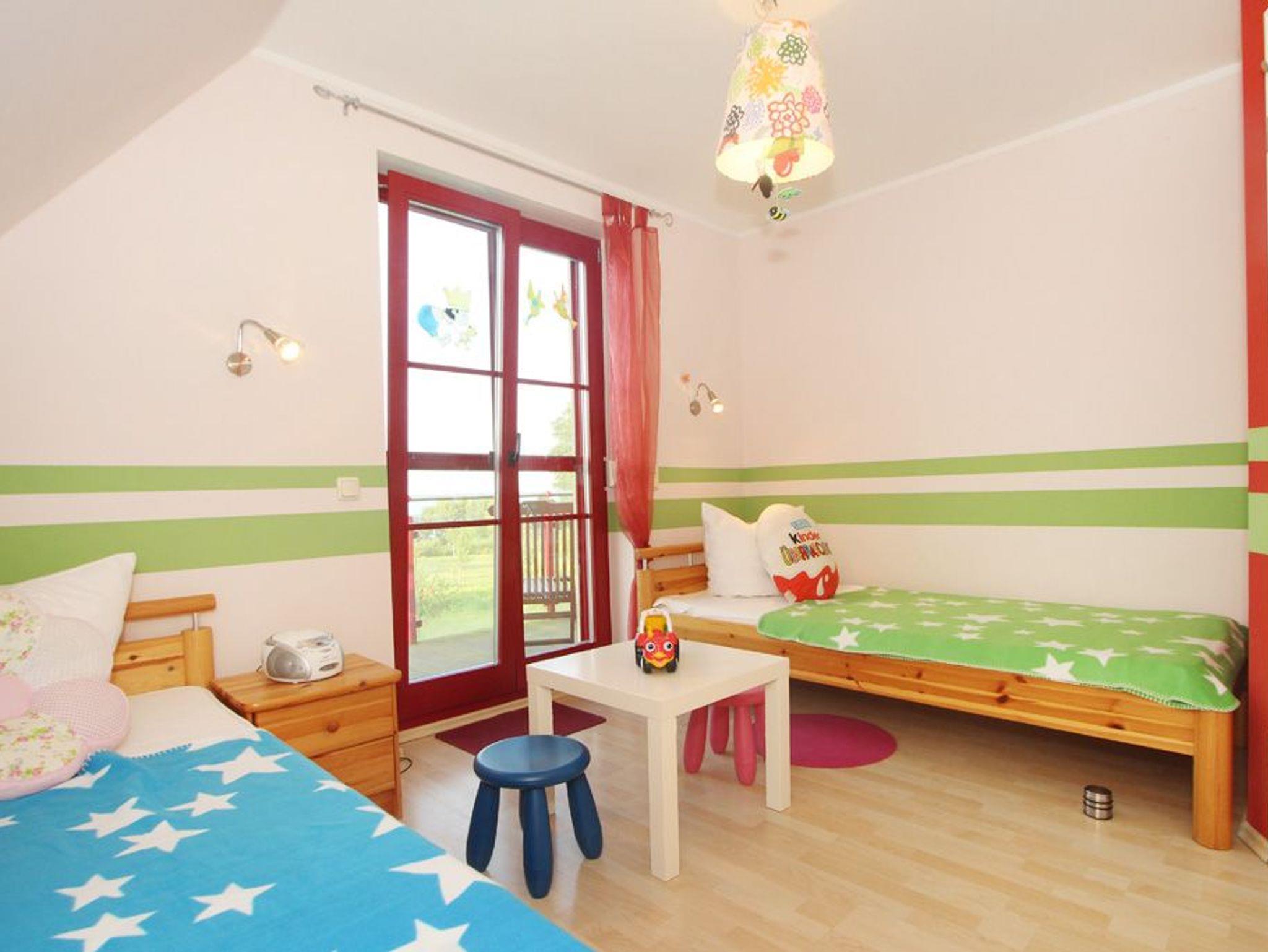 In der zweiten Wohnebene befinden sich die 3 Schlafzimmer: Für Kinder stehen im Kinderzimmer 2 Einzelbetten zur Verfügung. Im 2. und 3. Schlafzimmer steht jeweils ein Doppelbett. Im 3. Schlafzimmer ist zusätzlich ein Fernseher und ein Kinderreisebett.