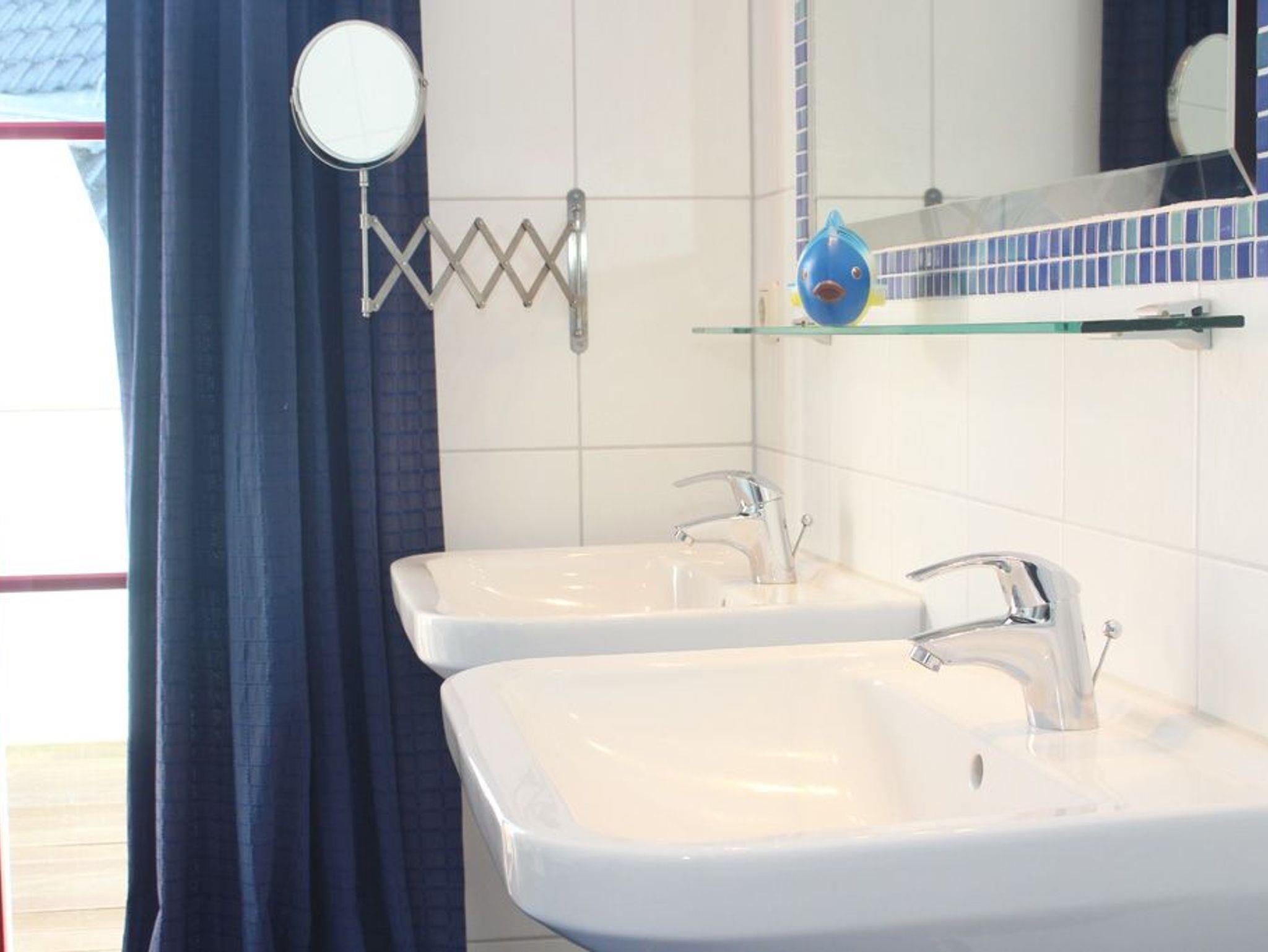 Im Badezimmer gibt es 2 Waschbecken, Dusche, WC, Badewanne und Sauna.