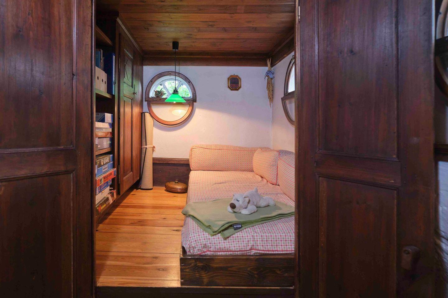 Beim Eintreten fällt sogleich die liebevolle Anordnung antiker Kleinigkeiten und teilweise antiquarische Einrichtung ins Auge. Die Küche, mit einer Balkenhöhe von nur 1,85 m, ist gemütlich und hat ihren alten Charakter bewahrt.