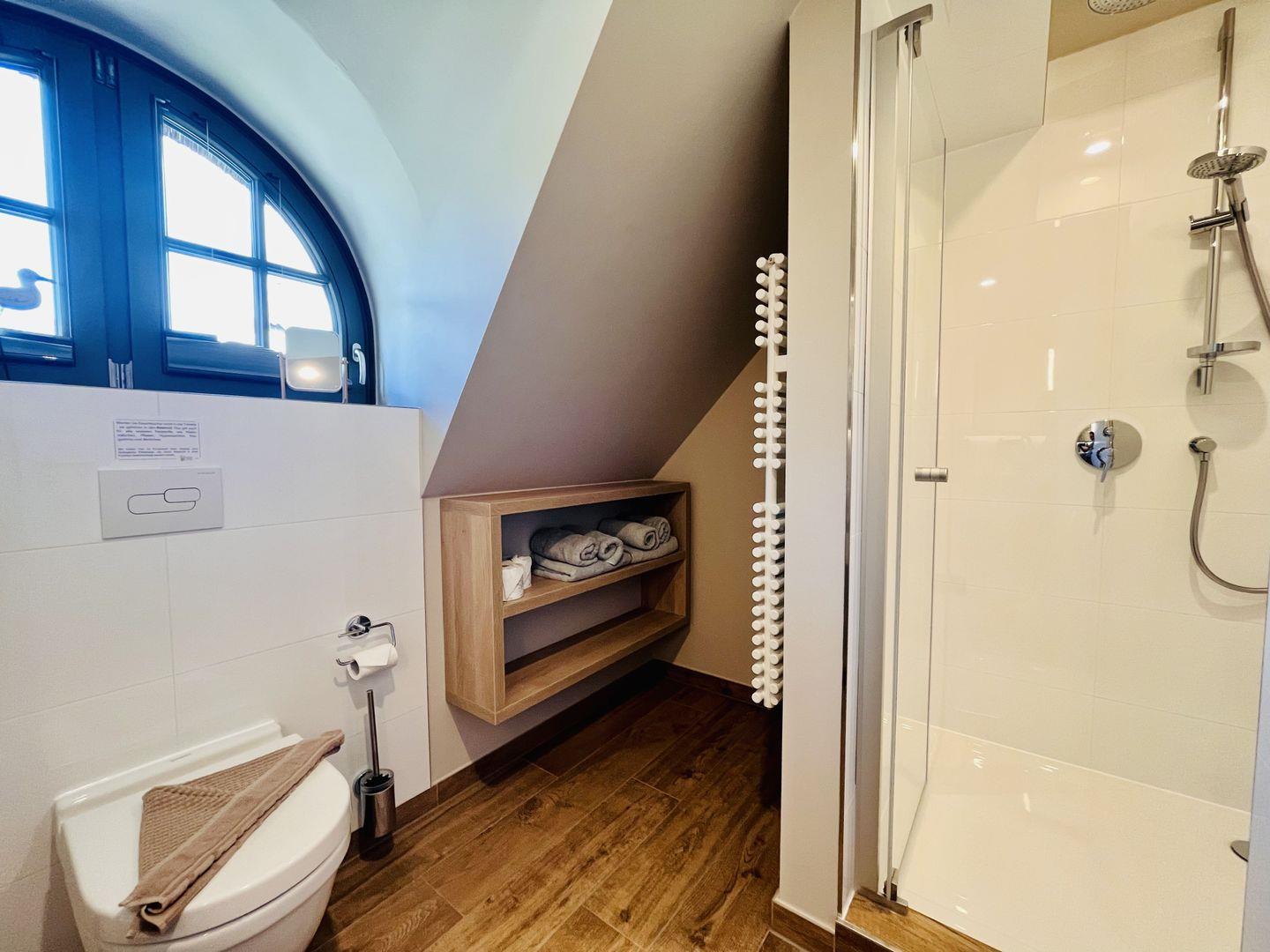 Zubereiten können Sie sie in der offenen und modernen Küche. Alle Geräte sind hochwertig. Ein komplettes Geschirr-Service befindet sich in den Schränken. Abwaschen muss hier zum Glück niemand. Es gibt einen Geschirrspüler. Ein bequemes Boxspringdoppelbett (180 x 200) verspricht erholsame Träume. Das Schlafzimmer verfügt über einen Kleiderschrank und ebenfalls einen Flat-TV. Ein Bad mit Dusche und WC sorgen für genügend Raum zum Frischmachen. Bei Anreise liegen Handtücher für Sie bereit und die Betten sind bezogen.