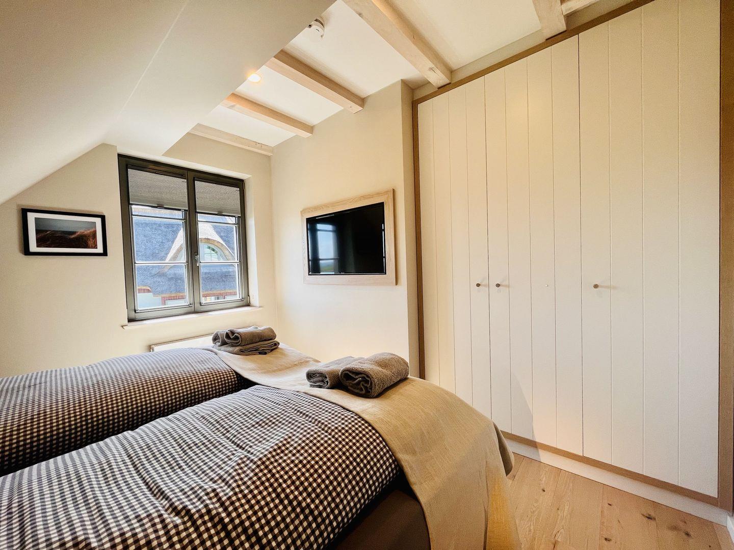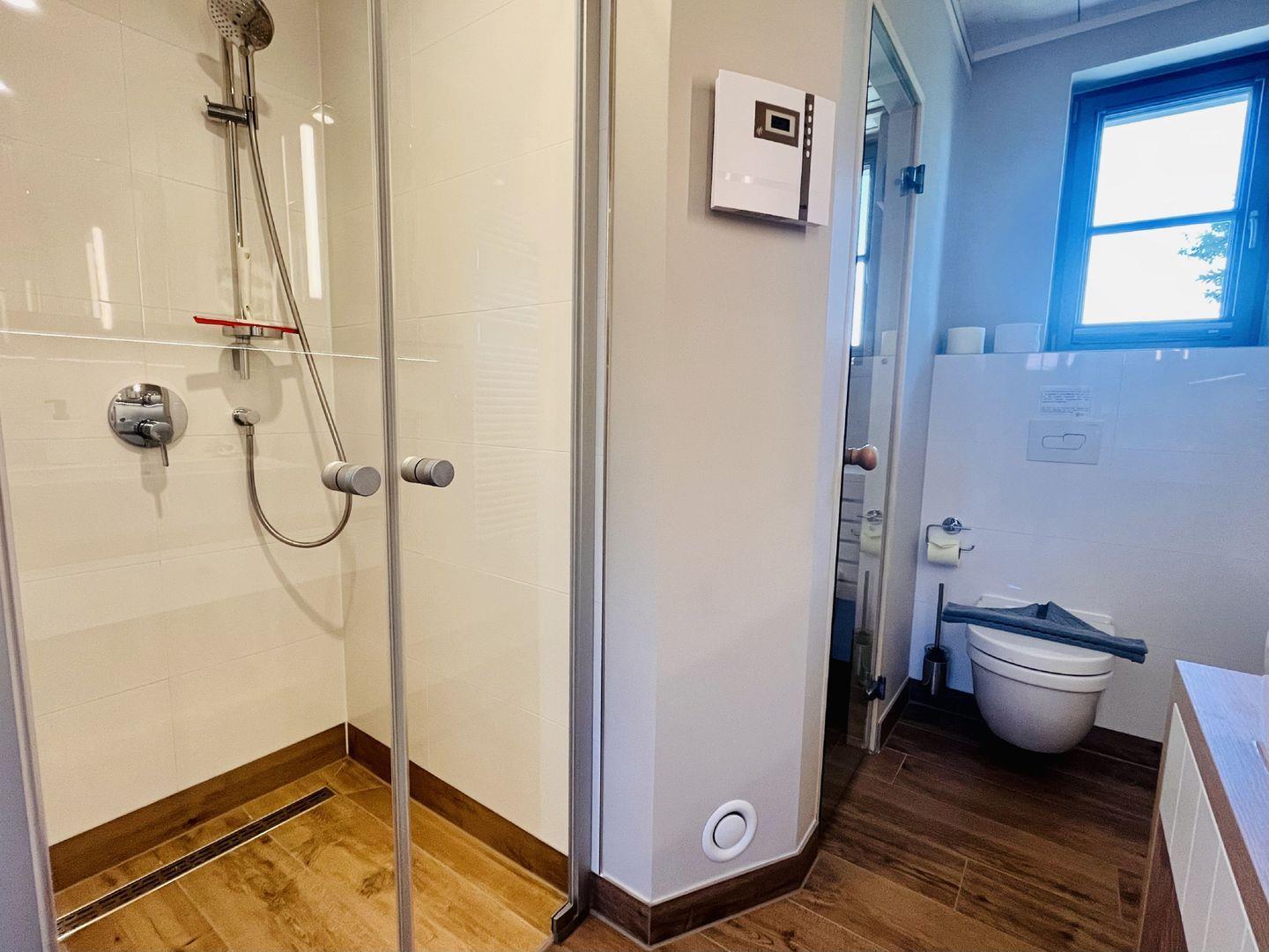 Zubereiten können Sie Ihre Mahlzeiten in der offenen und modernen Küche, welche voll ausgestattet ist und über einen elektrischen Tischgrill verfügt. Dieser ist auch für die Nutzung auf der Terrasse geeignet. Alle Geräte sind hochwertig. Ein komplettes Geschirr-Service befindet sich in den Schränken. Abwaschen muss hier zum Glück niemand, es gibt einen Geschirrspüler. Weiter geht es mit den beiden komfortablen Schlafzimmern. Ein bequemes Boxspringdoppelbett (180 x 200) und zwei Boxspringeinzelbetten (90 x 200) versprechen erholsame Träume. Die Zimmer verfügen über je einen Kleiderschrank und ebenfalls einen Flat-TV. Zwei Bäder mit Dusche und WC sorgen für genügend Raum zum Frischmachen. Das Bad im EG ist zudem mit einer Finnischen Sauna ausgestattet. Bei Anreise liegen Handtücher für Sie bereit und die Betten sind bezogen.