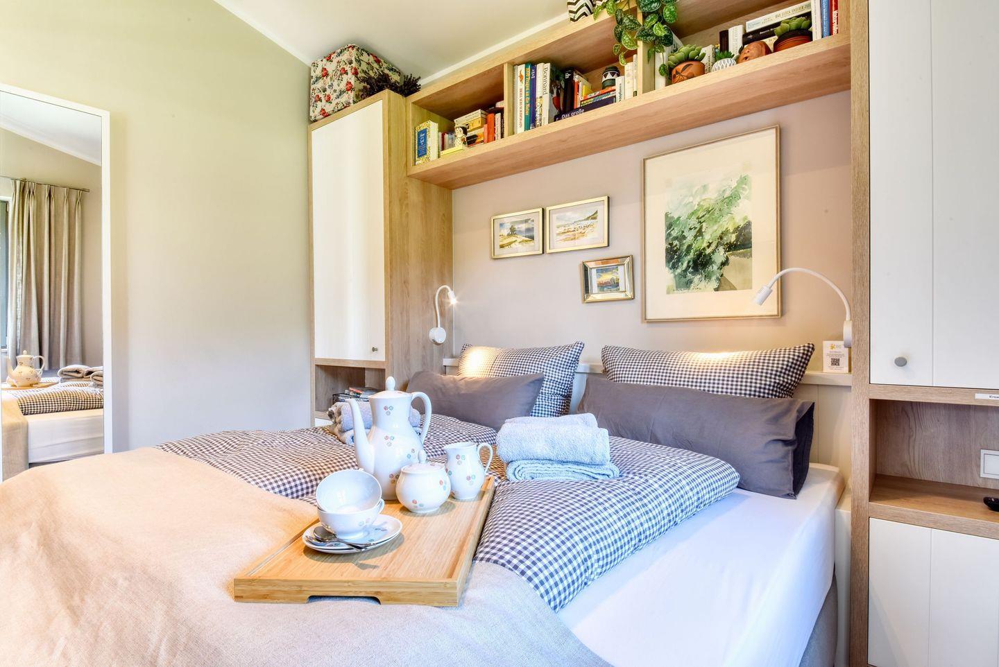 Heimelig ist die mit Glasschiebetüren abgegrenzte „SCHLAFKOJE“- ein Ruhepol. Umgeben von einer kleinen Bibliothek, lokalen Reiseführern und einer