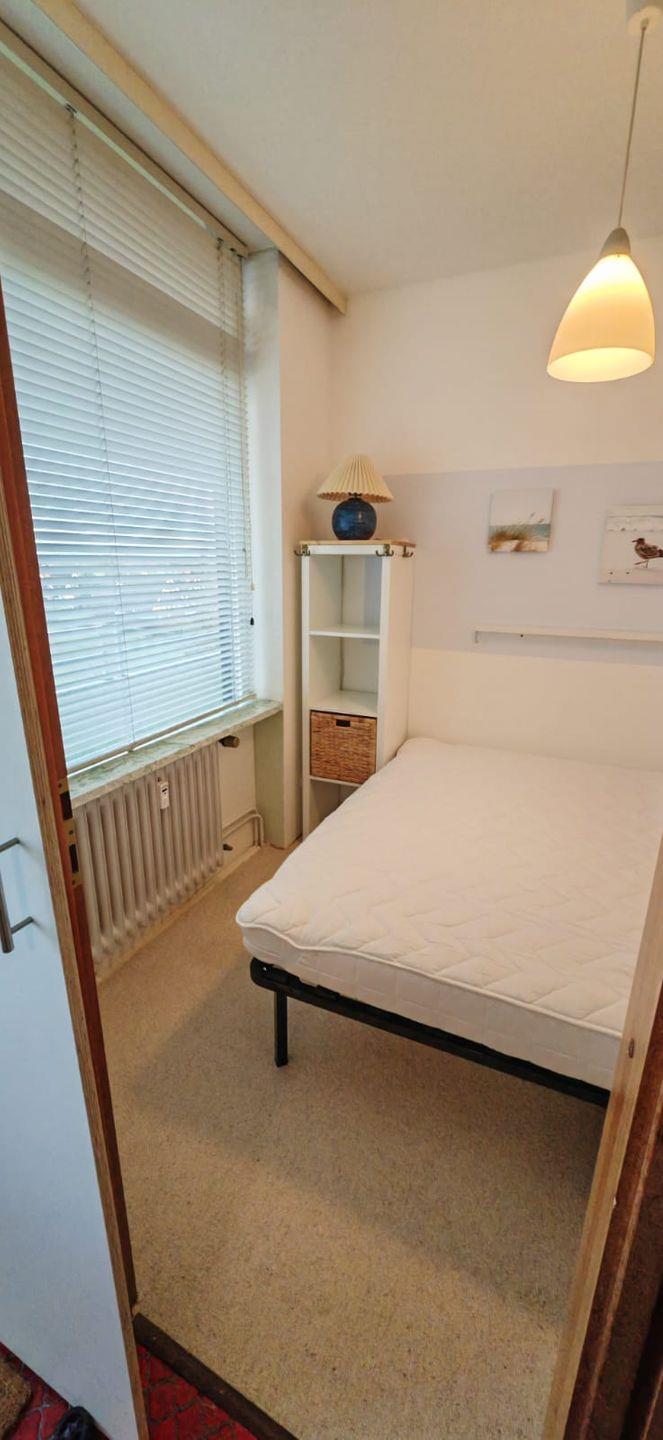 Gleich linksseitig finden Sie mit Fenster zum Laubengang das kleine Schlafzimmer mit einem Doppelbett für 2 Personen. Direkt daneben das Duschbad mit Dusche, Waschbecken, Toilette, etc.