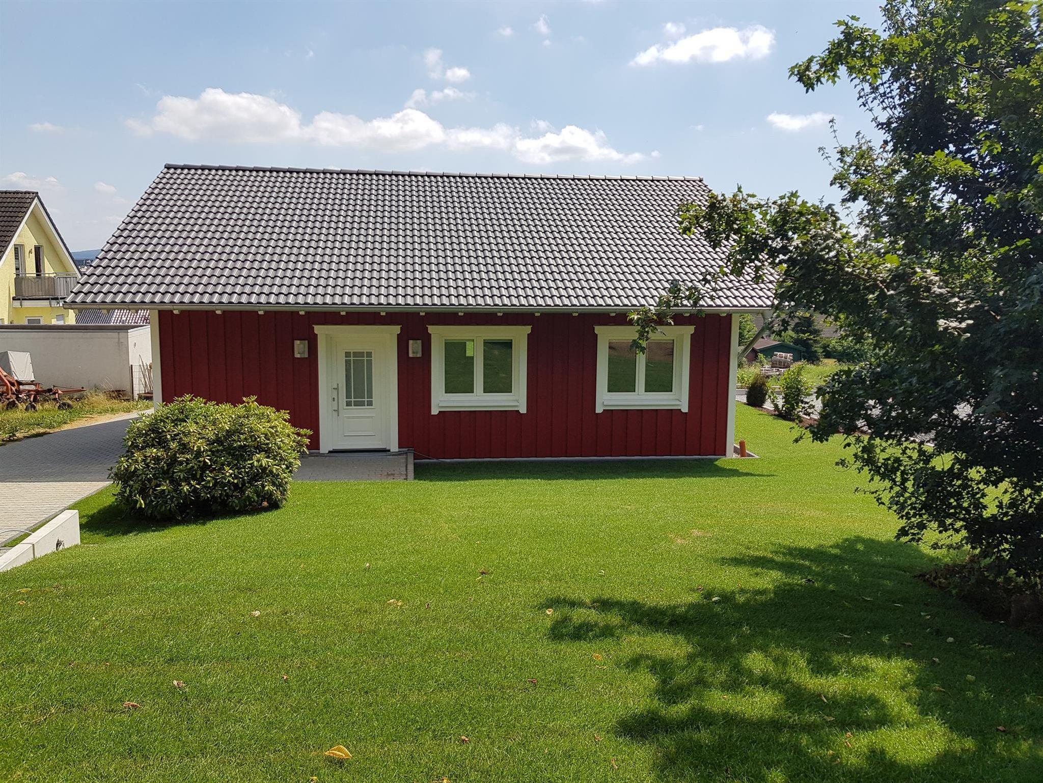 Das barrierefreie, ebenerdige, freistehende, 87 qm große Ferienhaus im skandinavischen Stil mit einer 40 qm großen Terrasse, ist umgeben von einem Garten. Die vier Meter lange Fensterfront zur Terrasse bietet Ihnen einen schönen Ausblick über das Wohngebiet und auf Felder und Wälder. Alle Räume haben eine separat regelbare Fußbodenheizung. 2019 wurde das Haus fertiggestellt. Lichtdurchflutete Räume voller Genuss und Leichtigkeit ermöglicht Ihnen Abstand zu nehmen von der Hektik und dem Stress des Alltags. Rollstuhl, Rollator.... sind ebenfalls willkommen. Die Türrahmen im Haus sind extra breit (1 Meter) und sehr hoch (2,10 Meter). Die Betten sind 2 Meter lang, haben kein Fussende und bieten damit auch für große Menschen bequem Platz. Auch die 40 qm große Terrasse ist barrierefrei zugänglich. Ein schnelles WLAN ist selbstverständlich im Haus und auch auf der Terrasse verfügbar. Via Internet-TV mit exzellenter Bildauflösung haben Sie Zugang zu allen gängigen Fernseh- sowie Radioprogrammen. Küche mit Vollausstattung und ein Hauswirtschaftsraum mit Waschmaschine, Wäschetrockner stehen Ihnen selbstverständlich kostenfrei zur Verfügung. Eine Ladestation für E-Autos und für E-Bikes stehen ab 2020 ebenfalls bereit. Das Bad bietet eine barrierefreie Dusche. Das Waschbecken ist ebenfalls barrierefrei, da ohne Unterschrank. Der Wandspiegel ist auch im Sitzen einsehbar.