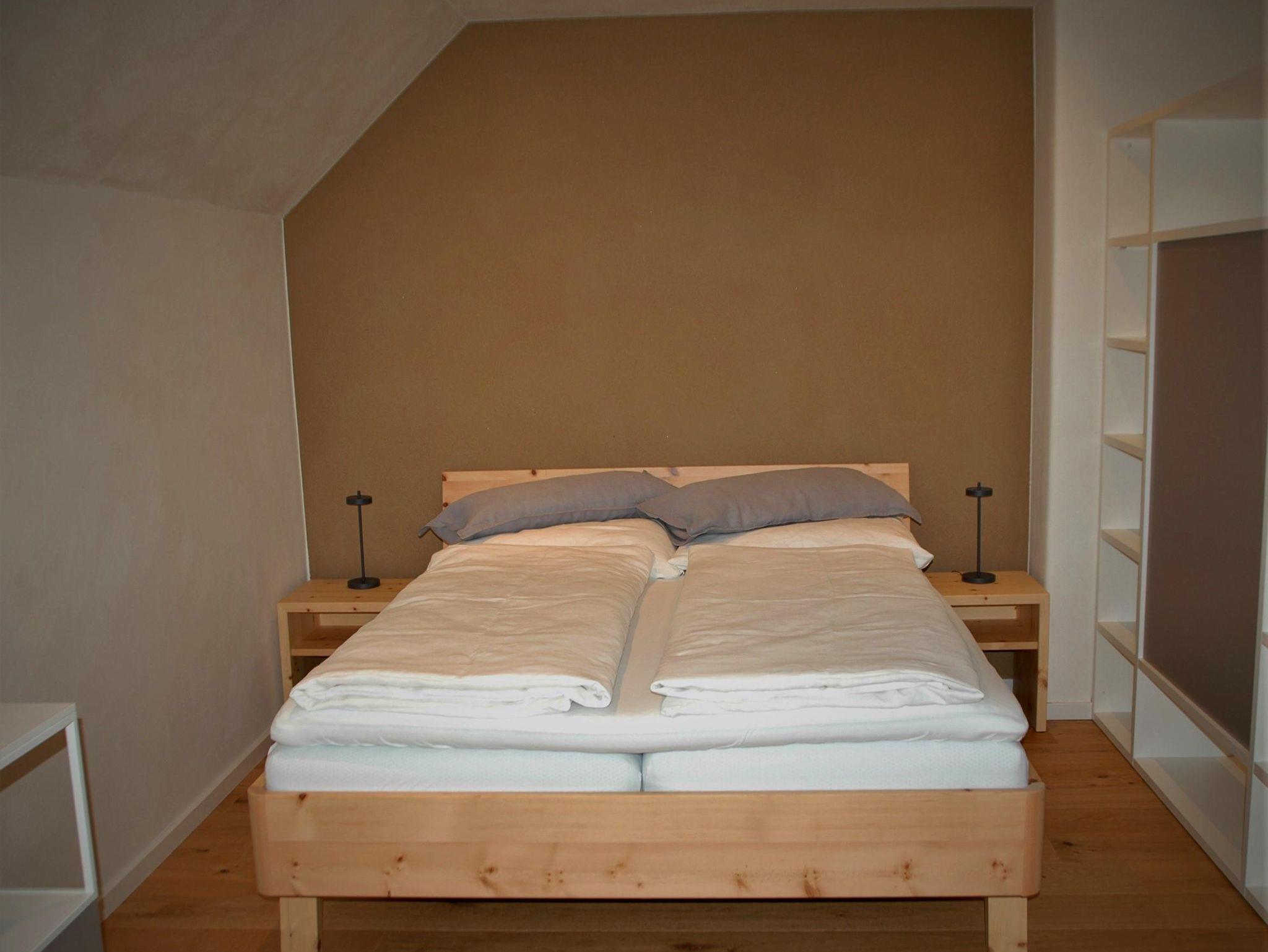 Wohnung 1 -großzügiges Appartement für 2 Personen, hochwertige ökologische Ausstattung, Eichenholzparkett, Lehmputz, biologische Leinenbettwäsche, Betten aus massivem Zirbenholz für einen besonders wohltuenden Schlaf, Badezimmer mit bodenebender Dusche, hochwertig ausgestattete Küche im Wohn/ Schlafraum integriert, Senseo-Pad-Kaffeemaschine, Pfalzcard.
