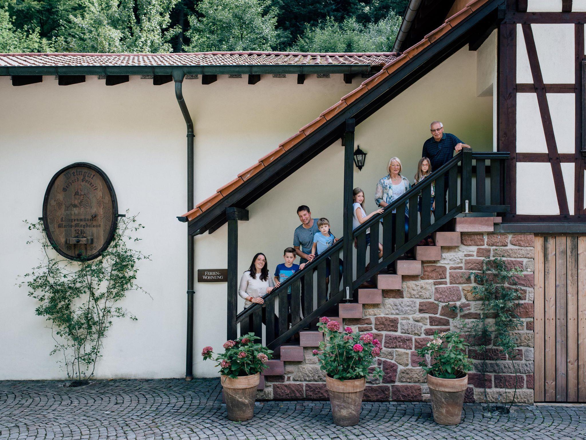 Wunderschön gelegen direkt an der Südlichen Weinstraße liegt das Kleinod Klingenmünster. In Traumlage direkt unterhalb der Burg Landeck liegt unser biologisch geführtes Weingut. Drei Generationen bewirtschaften die Rebfläche zu 100 % BIO . Im alten Fachwerkhaus, zentral im Gutshof gelegen, finden Sie stillvoll renovierte Ferienwohnungen für bis zu 4 Personen. Natürliche Materialien, wie Kalk- und Lehmputze, Kalkfarben und Eichendielen, bereiten ein wunderbares Raumklima. Hinter dem Haus gurgelt ein kleines Bächlein, die frische Waldluft wird vom Vogelgezwitscher erfüllt. Eine alte Stiege führt direkt vom Gutshof bis zur besten Weinlage , dem Kirchberg. Direkt am Haus liegen wunderbare Rad- und Wanderwege. Auch der Aufstieg zur Burg beginnt vor der Tür.