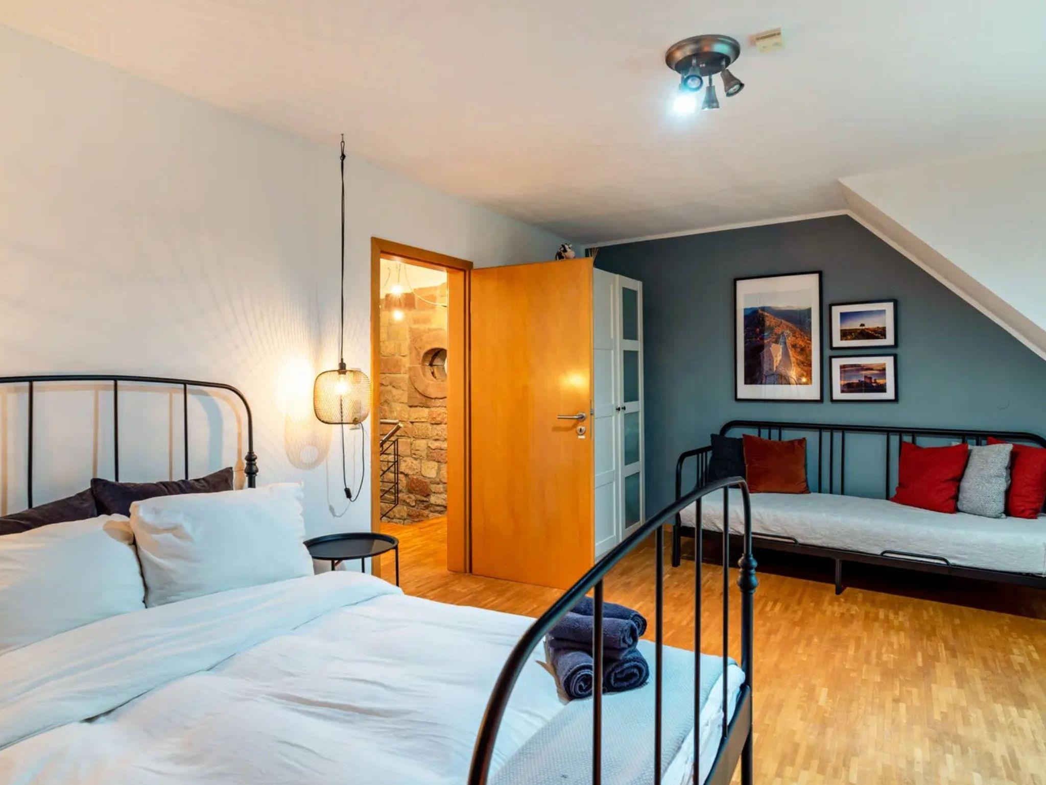 Hier finden bis zu 8 Personen auf zwei Etagen ein behagliches Zuhause – mit lichtdurchfluteten Räumen, moderner Ausstattung und dem Charme eines historischen Hofs. Euch erwarten 4 gemütliche Schlafzimmer, 2 Bäder, eine voll ausgestattete Küche und ein großzügiges Wohnzimmer für gemeinsame Kochabende, Spiele und gute Gespräche.