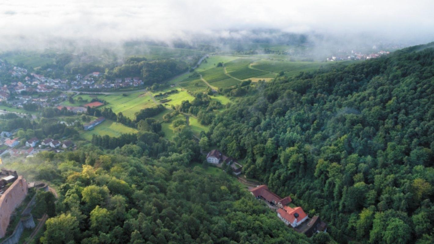 Wunderschön gelegen direkt an der Südlichen Weinstraße liegt das Kleinod Klingenmünster. In Traumlage direkt unterhalb der Burg Landeck liegt unser biologisch geführtes Weingut. Drei Generationen bewirtschaften die Rebfläche zu 100 % BIO . Im alten Fachwerkhaus, zentral im Gutshof gelegen, finden Sie unsere stillvoll renovierte Ferienwohnung. Natürliche Materialien, wie Kalk- und Lehmputze, Kalkfarben und Eichendielen, bereiten ein wunderbares Raumklima. Hinter dem Haus gurgelt ein kleines Bächlein, die frische Waldluft wird vom Vogelgezwitscher erfüllt. Eine alte Stiege führt direkt vom Gutshof bis zur besten Weinlage , dem Kirchberg. Direkt am Haus liegen wunderbare Rad- und Wanderwege. Auch der Aufstieg zur Burg beginnt vor der Tür.