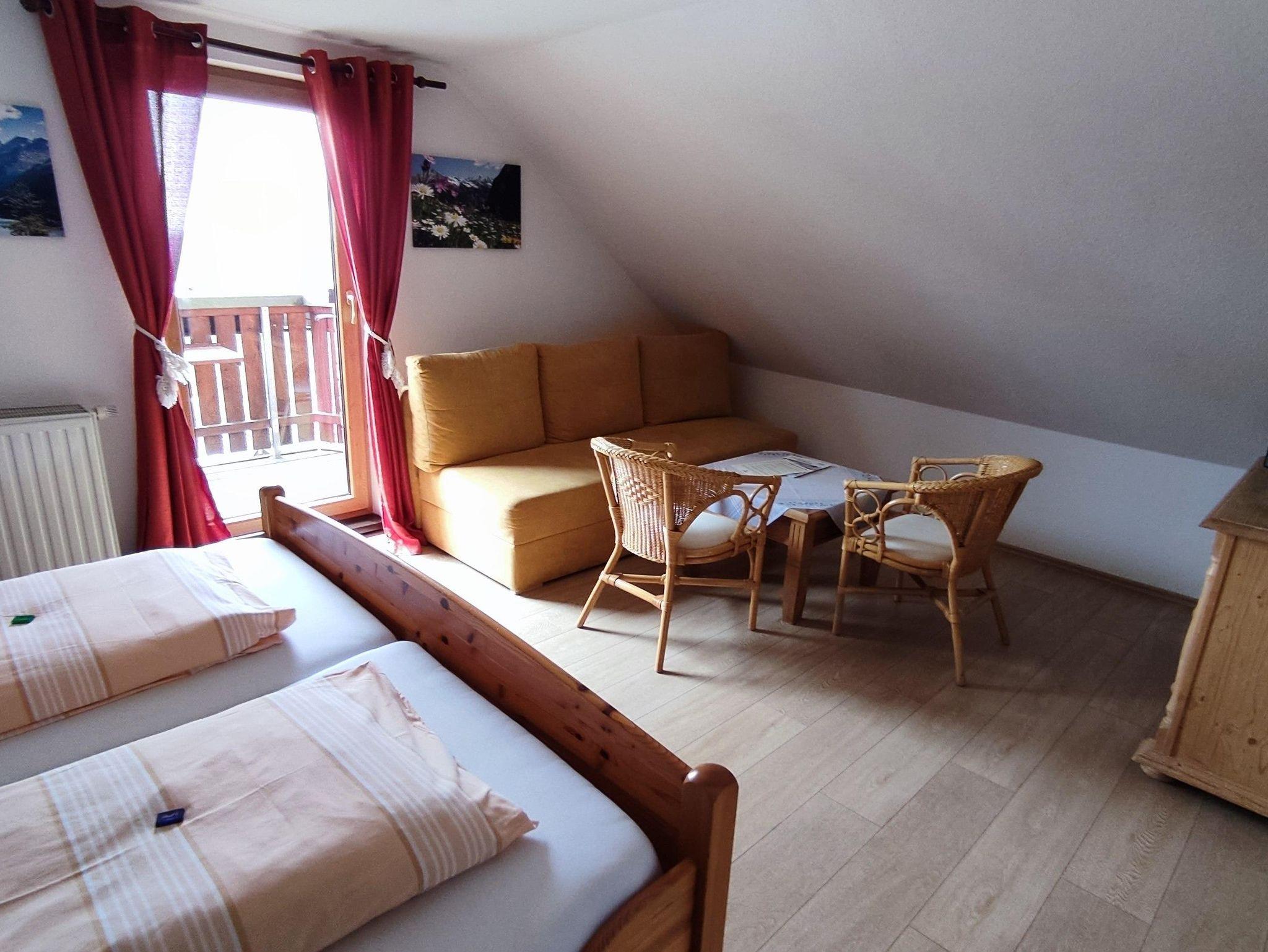 Zimmer 3 bietet einen herrlichen Blick ins Tal und Platz für bis zu 5 Personen.