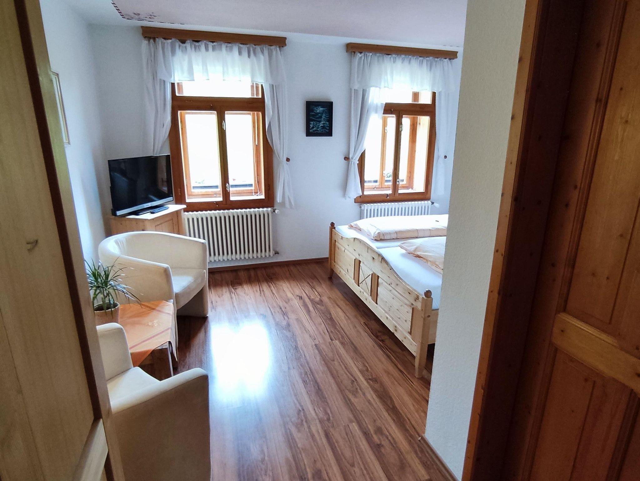 Ausstattung im Überblick: Blick zum Aschberg, Satelliten-TV, Dusche, WC, Doppelbett, 1 Aufbettung Schlafsofa für Kinder und Jugendliche, Preis zzgl. Kurtaxe