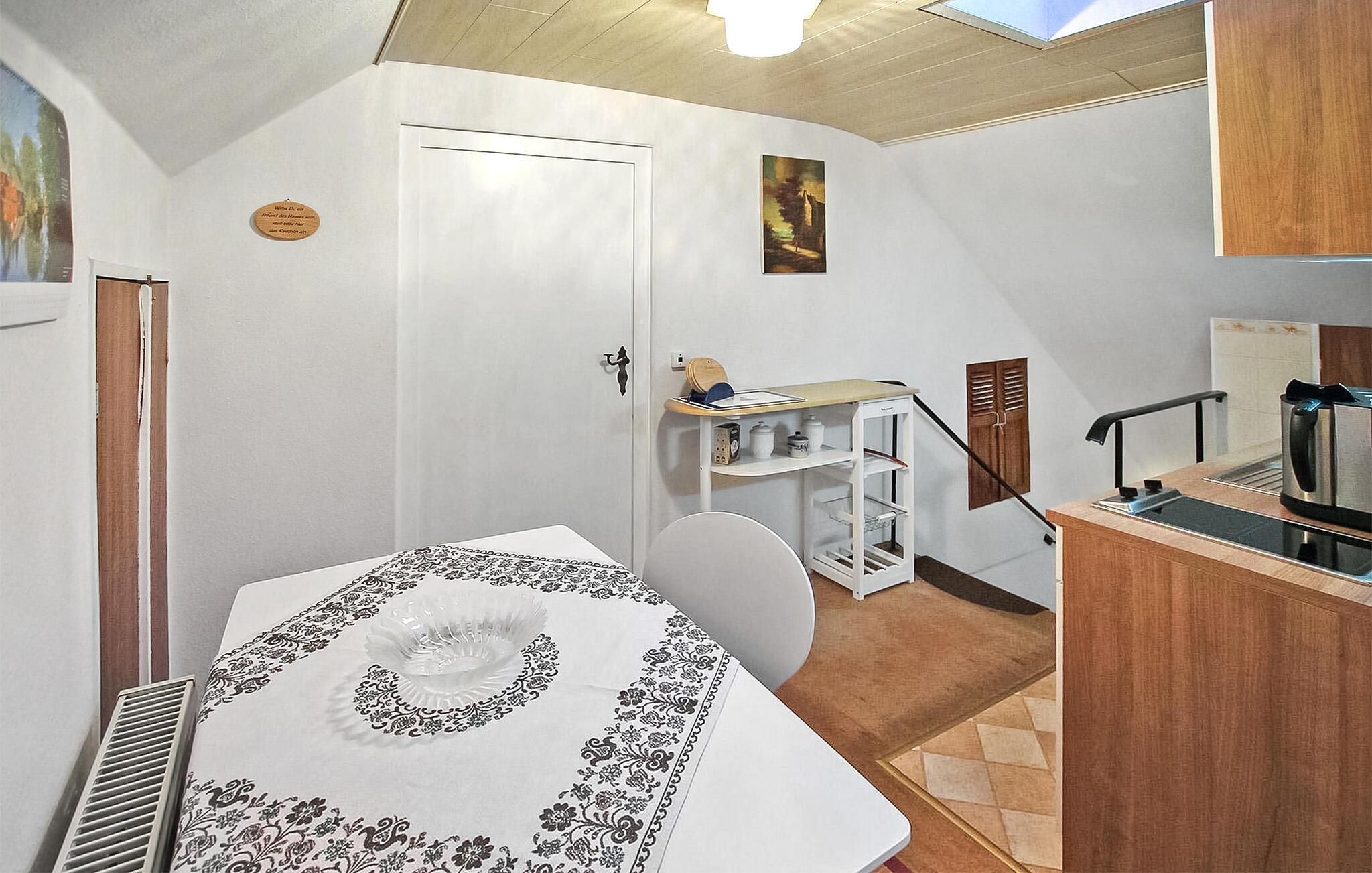 Denna semesterlägenhet för upp till 3 personer, som renoverades 2018, ligger på översta våningen i ägarens hus i ett lugnt läge i utkanten av ett bostadsområde, bara ca 200 m från Müritz och den populära cykelrundan. Restauranger, hamnen och en bondemarknad med bland annat bakverk ligger inom gångavstånd.