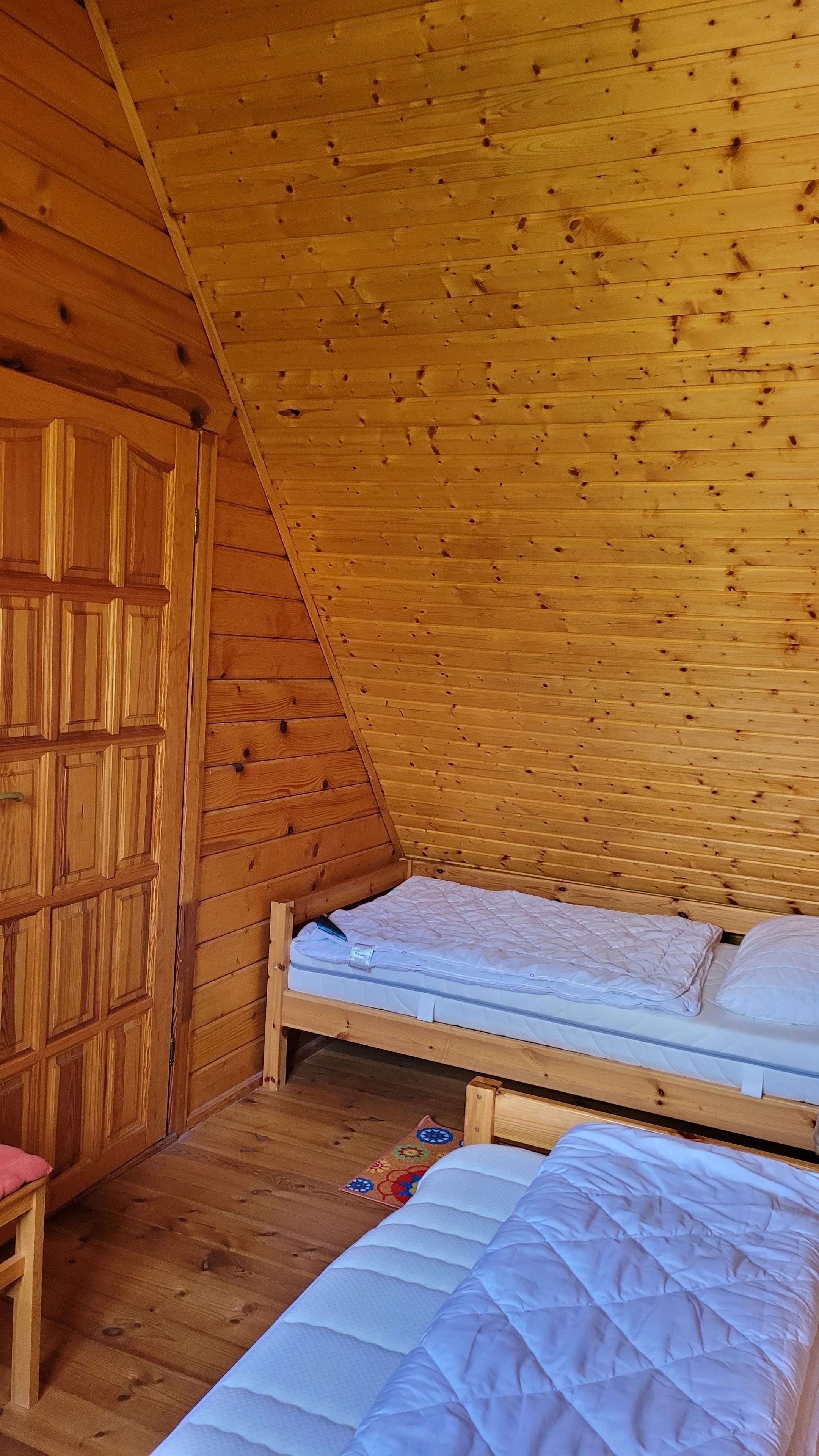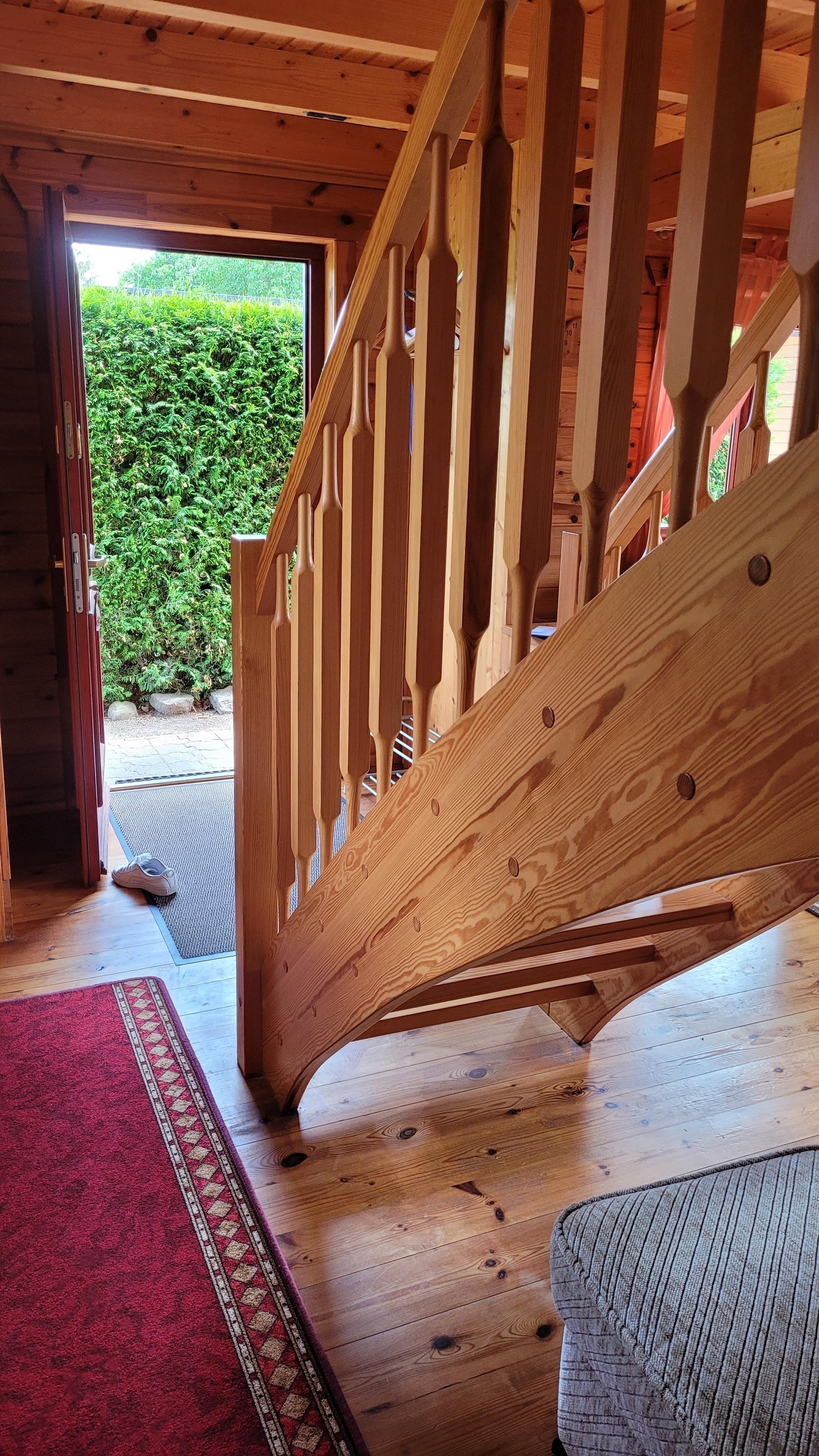 Gemütliches Ferienhaus als Doppelhaushälfte, im Blockbohlenstil, 1, 5-geschossig für 4 Personen möglich plus Baby. Sie können unsere Ferienhäuser, sowie das gesamte Grundstück mit dem Teich genießen.