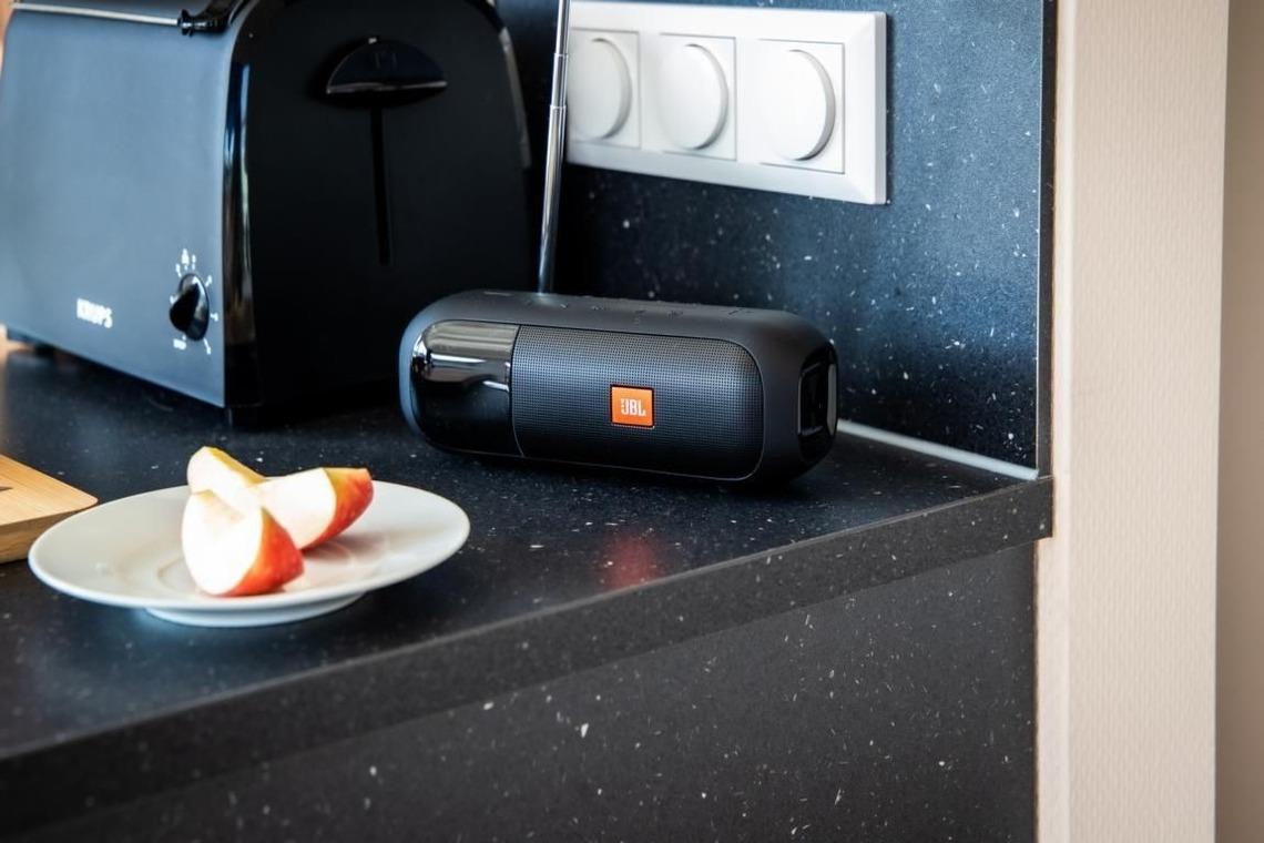 Kaffeemaschine, Wasserkocher, Toaster und Kochgeschirr sind vorhanden. Das Radio mit Bluetooth-Lautsprecherfunktion und der 48"-Flachbildfernseher sorgen für beste Unterhaltung. In den Schlafzimmern befinden sich je ein Doppelbett sowie Wandschränke mit genug Stauraum für Kleidung und Ihre persönlichen Gegenstände. Ihren Pkw parken Sie kostenlos auf dem öffentlichen Parkplatz am Hafen. Zum Be- und Entladen können Sie in die Nähe der Steganlage fahren. Ihre Einkäufe und schweres Gepäck transportieren Sie bequem mit dem im Hausboot vorhandenen Handwagen vom Eingangstor des Stegs bis zu Ihrem Floatinghouse.