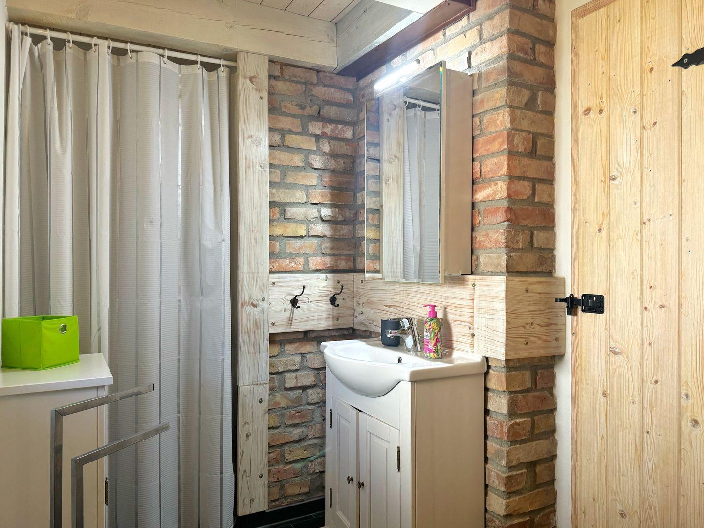 Das Erdgeschoss des charmanten Hauses gliedert sich in einem kleinen Eingangsbereich, ein Badezimmer mit Fenster, Waschbecken, WC und bodengleicher Dusche sowie einen gemütlichen Wohnbereich mit Sofa-Ecke, TV, Kaminofen und offener Küche. Die Küche ist mit einem Ceran-Herd, Backofen, Kühlschrank mit Gefriermöglichkeit, Spülmaschine sowie mit Kaffeemaschine, Wasserkocher und Toaster ausgestattet. Über den Wohnbereich gelangen Sie auf die nach Osten ausgerichtete teilweise überdachte Terrasse, die zum Verweilen einlädt. Im Obergeschoss des Ferienhauses gibt 2 helle Schlafzimmer, eines mit einem Doppelbett und das andere mit 2 Einzelbetten. j