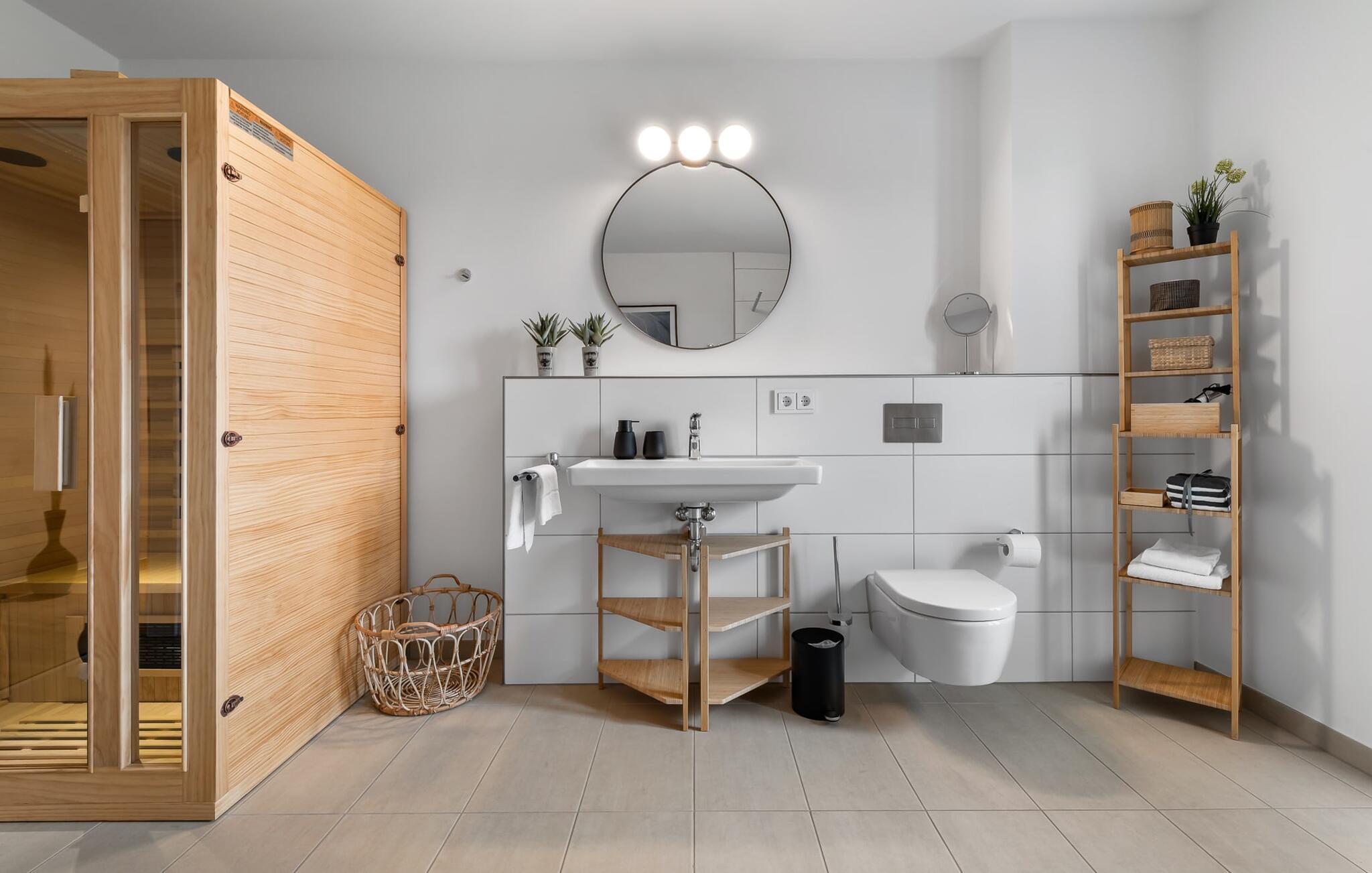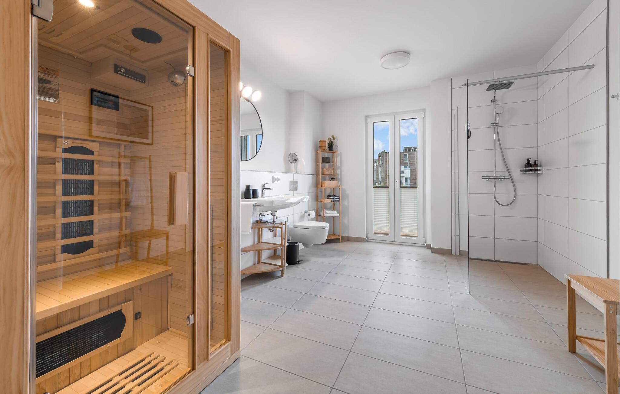 En annan höjdpunkt är duschrummet. Förutom alla användbara funktioner väntar en dusch på golvnivå och en infraröd kabin på att skämma bort gästerna. Vare sig det är efter en dag till sjöss eller efter en lång dag på stranden. Du hittar också en tvättmaskin här.