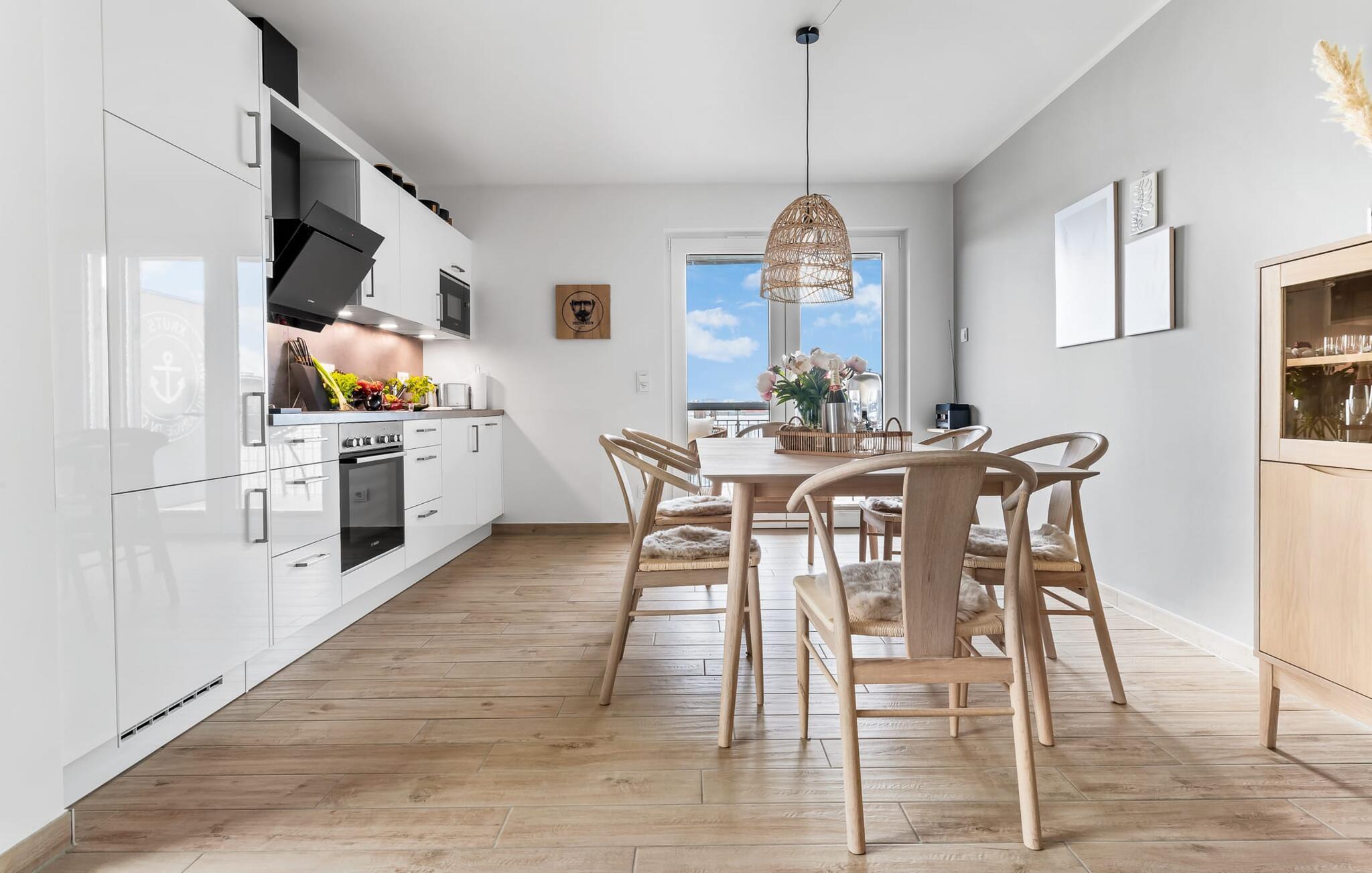 Det fullt utrustade pentryt lämnar inget övrigt att önska och gör att man vill laga läckra måltider tillsammans och avnjuta dem vid matbordet eller på terrassen. Och utsikten över hamnen finns alltid där för att följa med dig.