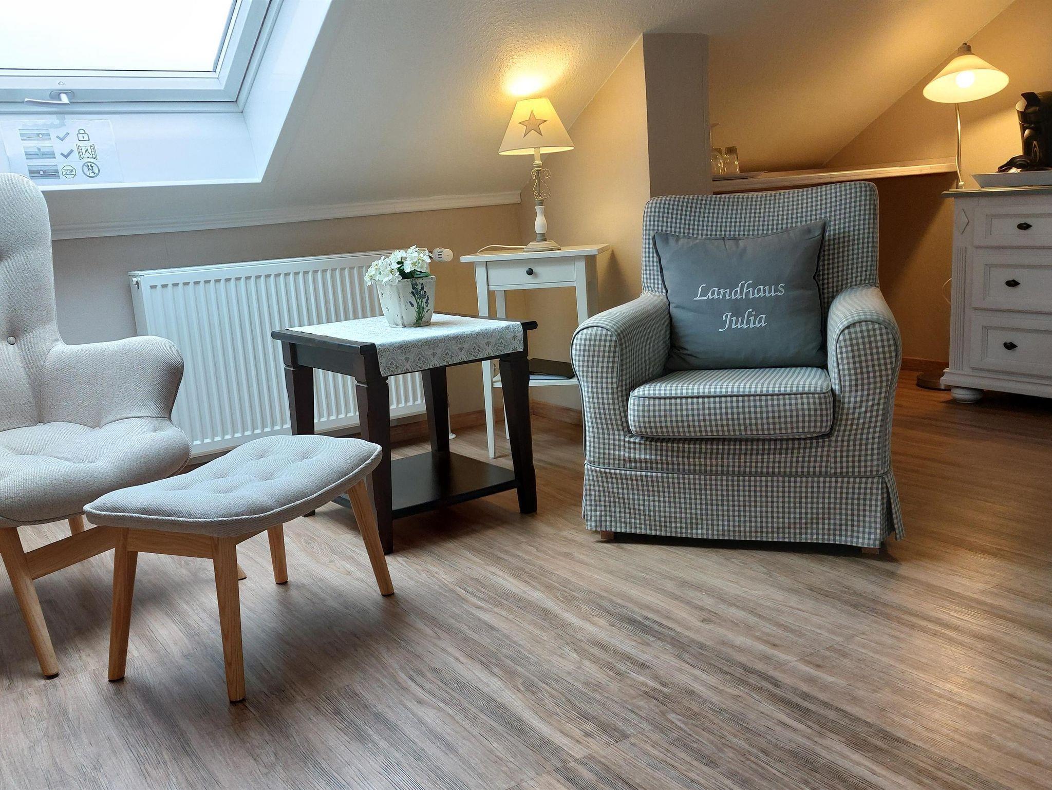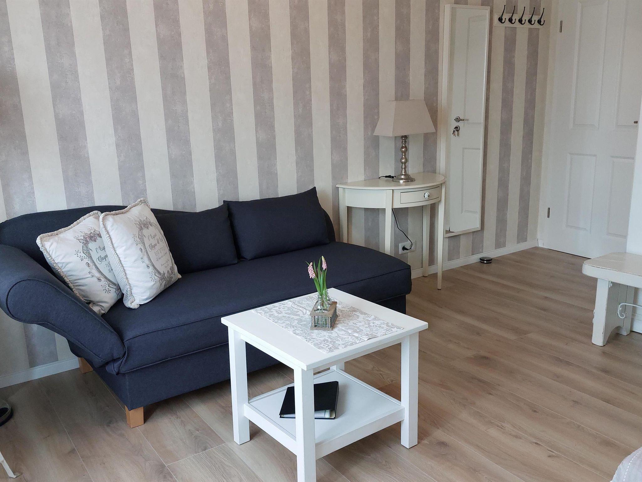 Unsere kleine Ferienwohnung im Landhausstil ist 45 m² groß. Sie umfasst einen kombinierten Wohn-Schlafbereich, eine vollausgestattete Küche mit gemütlichem Essbereich sowie ein Bad mit ebenerdiger Dusche. Terrasse und Balkon mit Moselbick.
