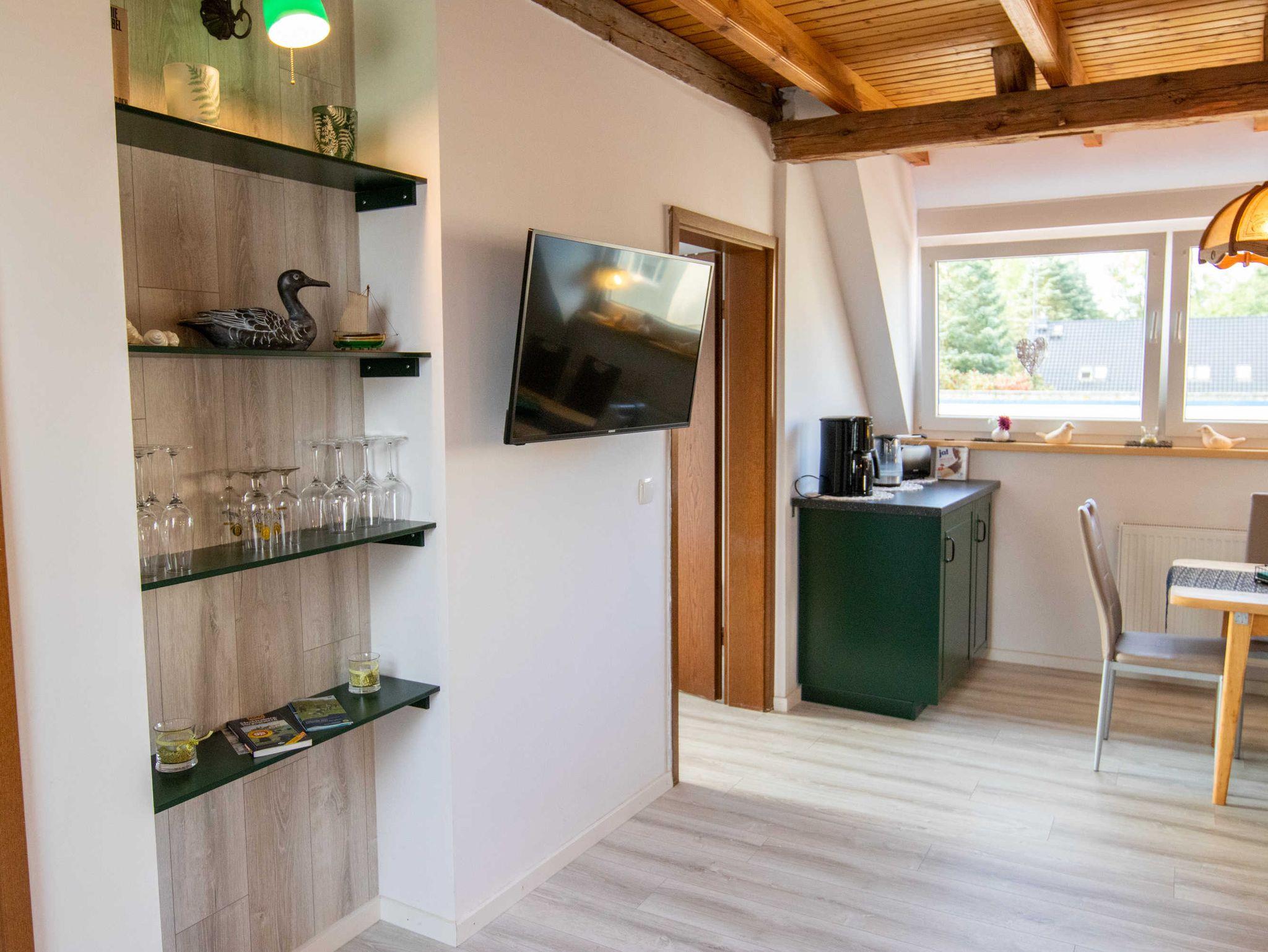 Die Ferienwohnung ist gut für 4 Personen geeignet und befindet sich im Obergeschoss einer Doppelhaushälfte unweit des Kogeler Sees und ist über den gemeinschaftlichen Hauseingang erreichbar.