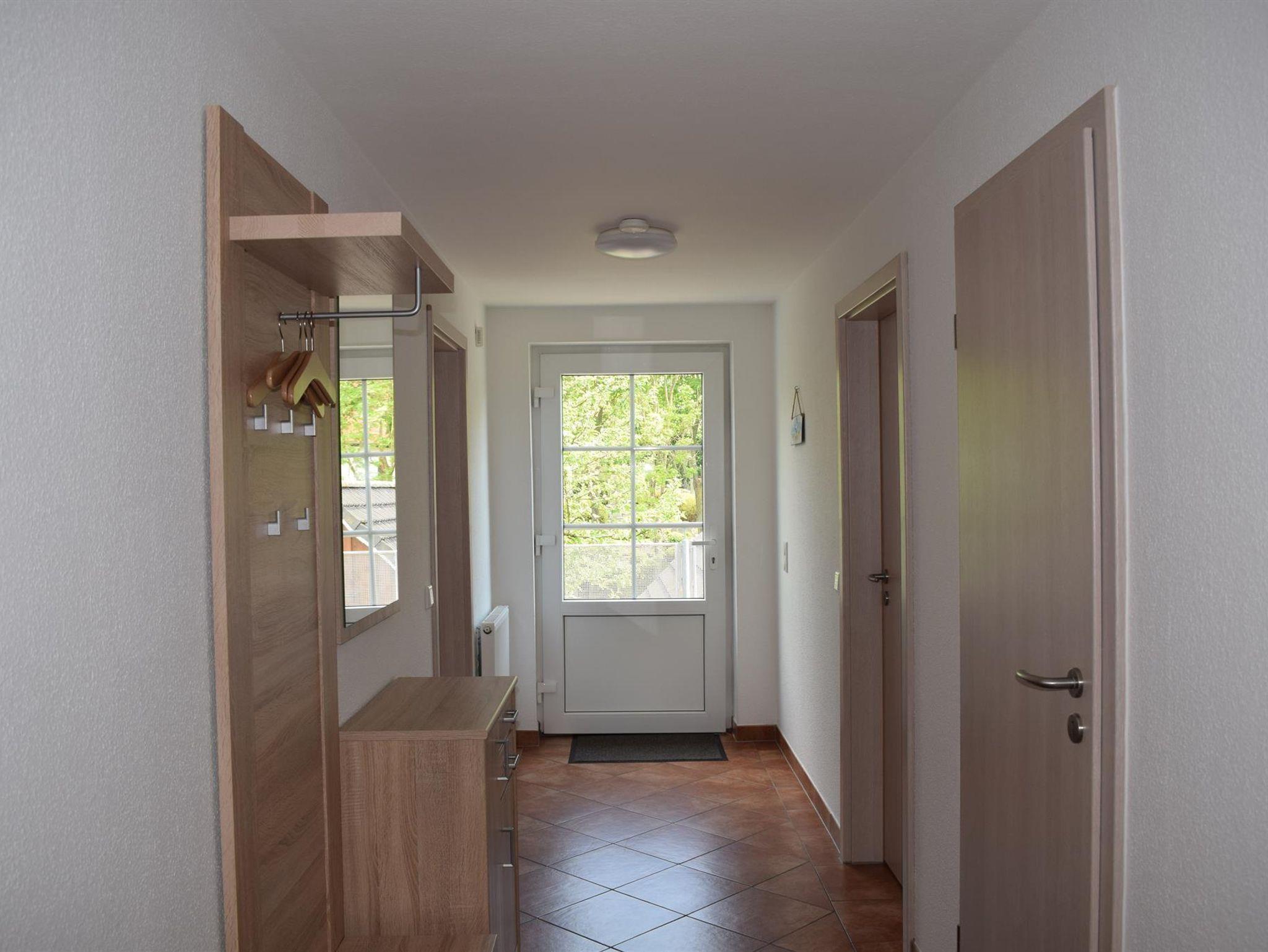 Ein Abstellraum mit Putzutensilien und Staubsauger sowie eine Garderobe mit Spiegel im Flur sind ebenfalls vorhanden.