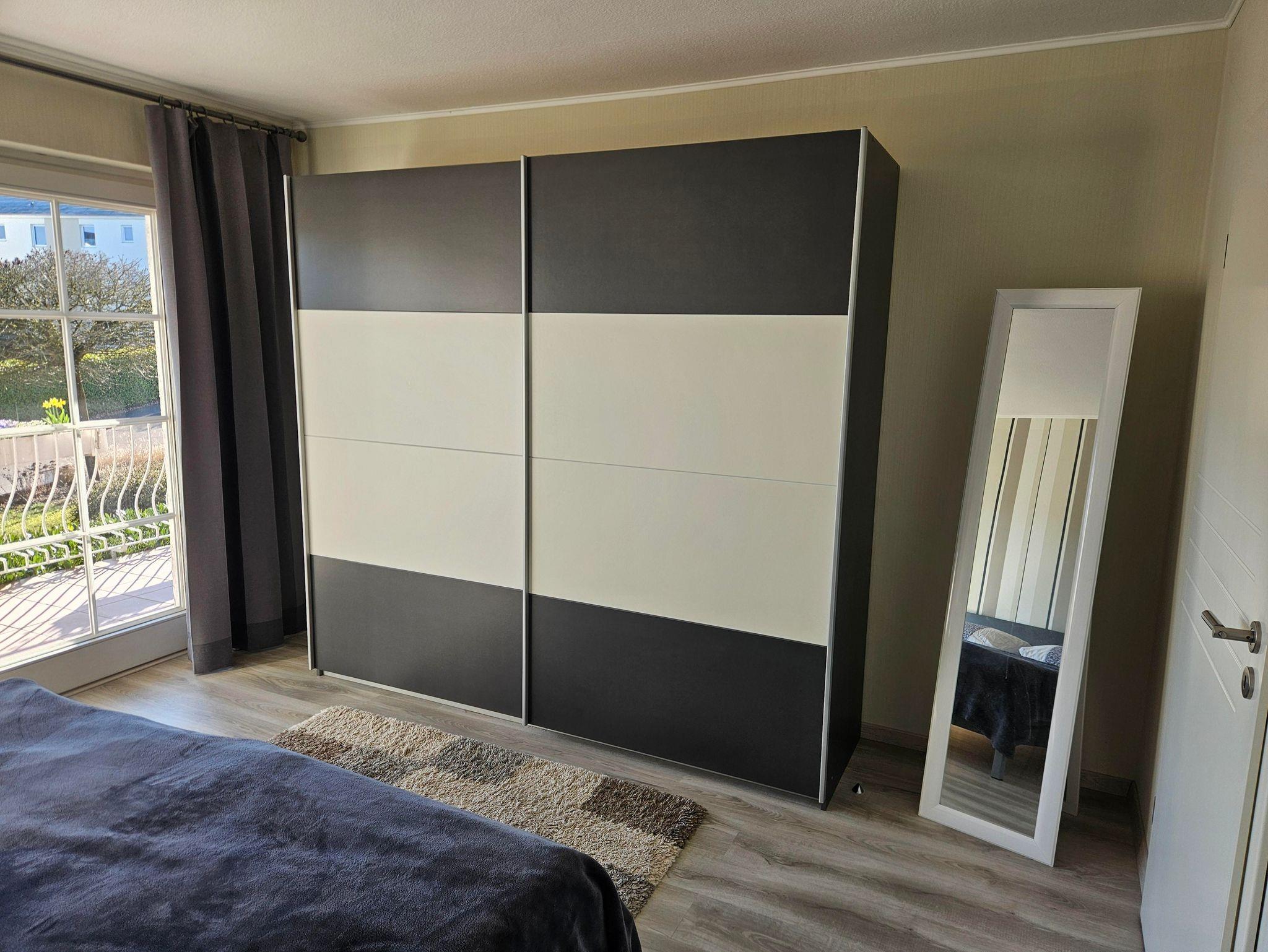 Im gemütlichen Schlafzimmer mit Doppelbett finden Sie die Ruhe für einen tiefen und erholsamen Schlaf. Ihre Kleidung und auch das Gepäck lassen sich bequem im großen Kleiderschrank unterbringen. Für Ihre Wertgegenstände steht Ihnen ein Safe zur Verfügung. Es gibt ebenfalls zwei Nachtschränke mit jeweils einer Nachttischlampe.