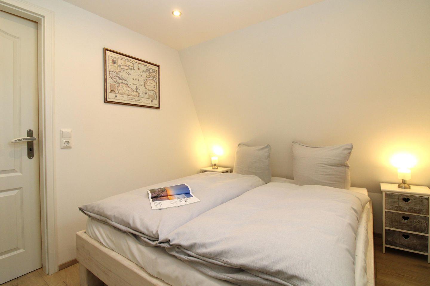 Das separate und zusätzliche 2. Schlafzimmer verfügt über zwei getrennte Einzelbetten (80 cm x 200 cm) sowie eine Kleiderkommode.