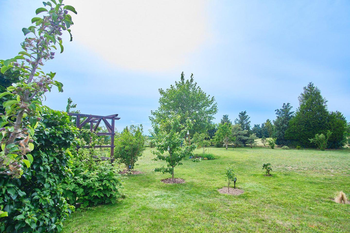 Das im Jahre 2007 erbaute, ebenerdige Ferienhaus verfügt über 1 Wohnraum mit Kamin, 1 Esszimmer, 1 Einbauküche, 2 separate Schlafräume, 1 Bad, 1 Gäste-WC, 1 überdachte Terrasse, einen ca. 1.500 m² großen, komplett eingezäunten Garten sowie eine Garage und PKW-Abstellplätze.