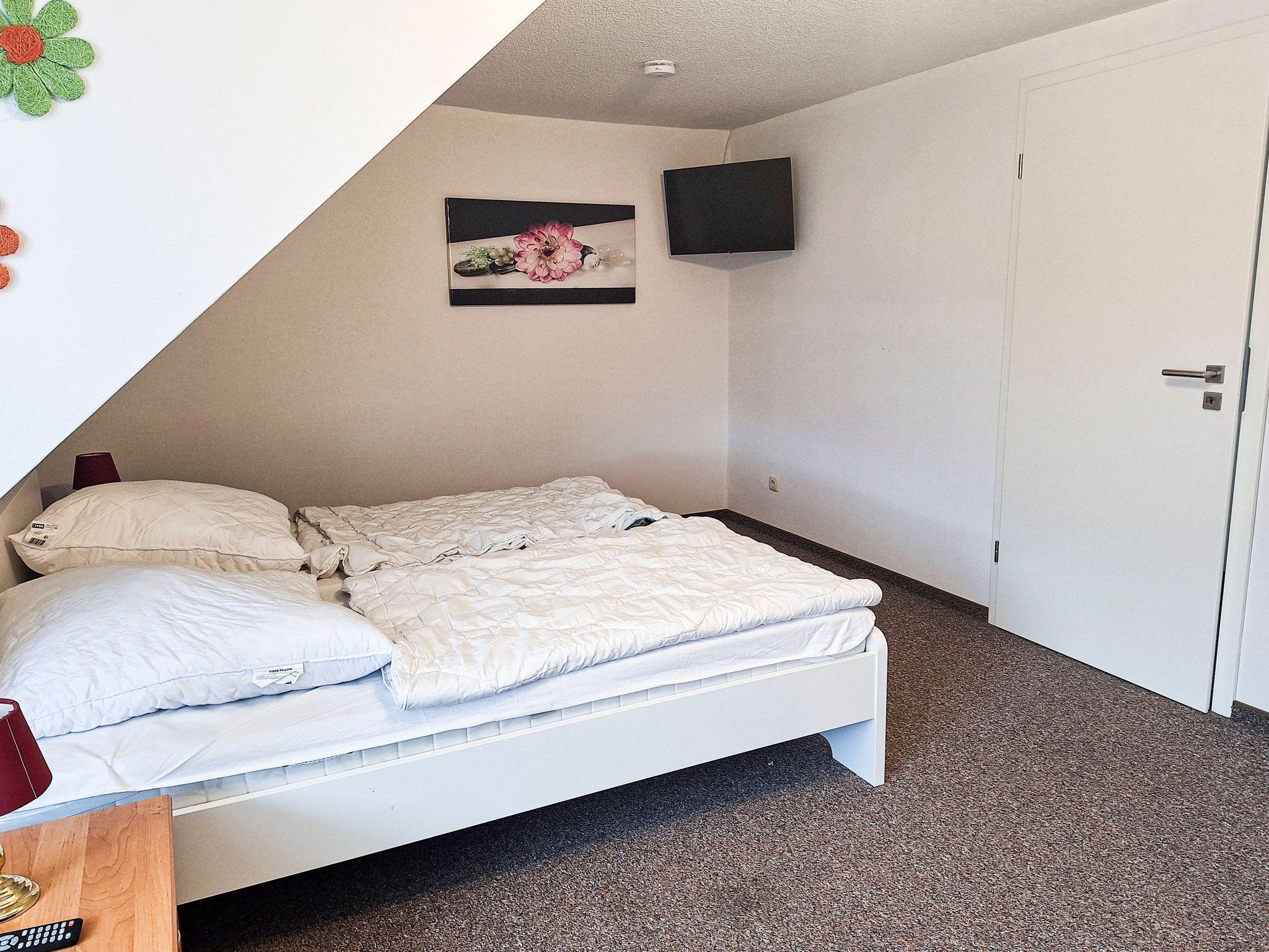 Das 110m² große Ferienhaus ist gemütlich auf zwei Etagen eingerichtet und bietet bis zu 6 Personen viel Platz. Es stehen Ihnen ein geräumiges Wohnzimmer mit Couch und TV, drei getrennte Schlafräume, eine separate, komplett ausgestattete Küche mit Geschirrspüler, zwei Bäder jeweils mit Badewanne oder Dusche und eine gemütliche Diele zur Verfügung. Ein Schlafzimmer verfügt über ein Doppelbett (180x200; getrennte Matratzen), im zweiten und dritten Schlafzimmer befinden sich jeweils zwei Einzelbetten (90x200).