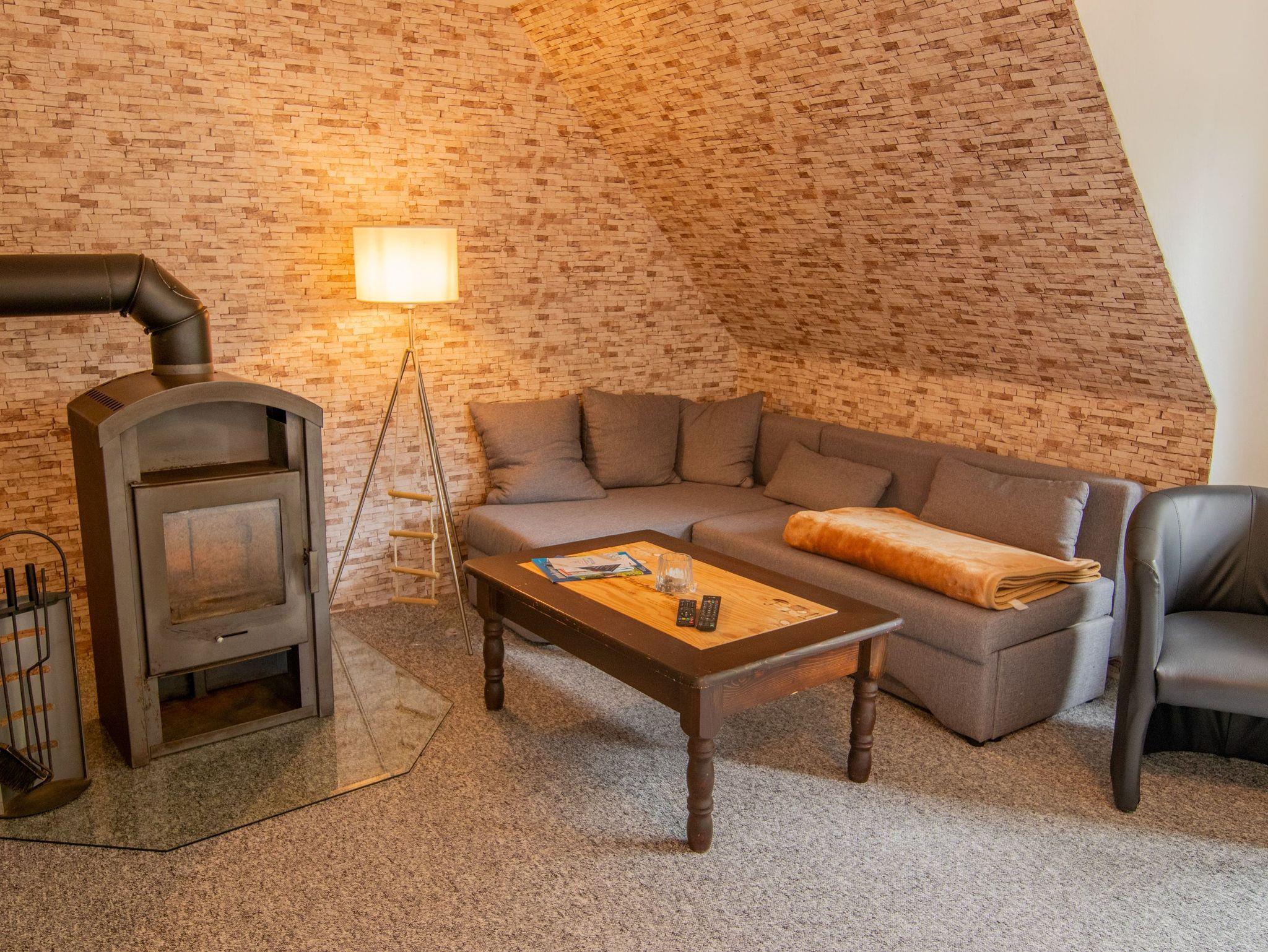Die Ferienwohnung im Obergeschoss an der Marina in Kröslin bietet dir auf 60 m² ausreichend Platz für 3 Personen und ein Kleinkind bis 2 Jahre. In der gemütlichen Dachgeschosswohnung findest du eine geräumige Küche, ein Wohnzimmer, ein Schlafzimmer und ein Bad mit Dusche und WC. Die gut ausgestattete Küche mit Essecke ist ideal zum gemeinsamen Kochen. Hier steht dir ein Backofen mit Herd, ein Kühlschrank (ohne Gefrierfach), eine Mikrowelle sowie praktische Küchenhelfer wie Wasserkocher, Kaffeemaschine und Toaster zur Verfügung. Das Wohnzimmer grenzt direkt an die Küche und das Bad. Hier kannst du es dir auf dem Sofa gemütlich machen und entspannte Abende vor dem Kamin oder beim TV schauen genießen. Ein Kleiderschrank befindet sich ebenfalls im Wohnzimmer. Vom Wohnzimmer aus gelangst du ins Schlafzimmer, das mit einem Doppelbett (180x200) und einem Einzelbett (100x200) ausgestattet ist. Die gemütliche Sitzecke im Innenhof lädt zum Verweilen ein und bietet dir auch die Möglichkeit, einen Grill aufzustellen und den Tag bei einem leckeren Grillabend ausklingen zu lassen.