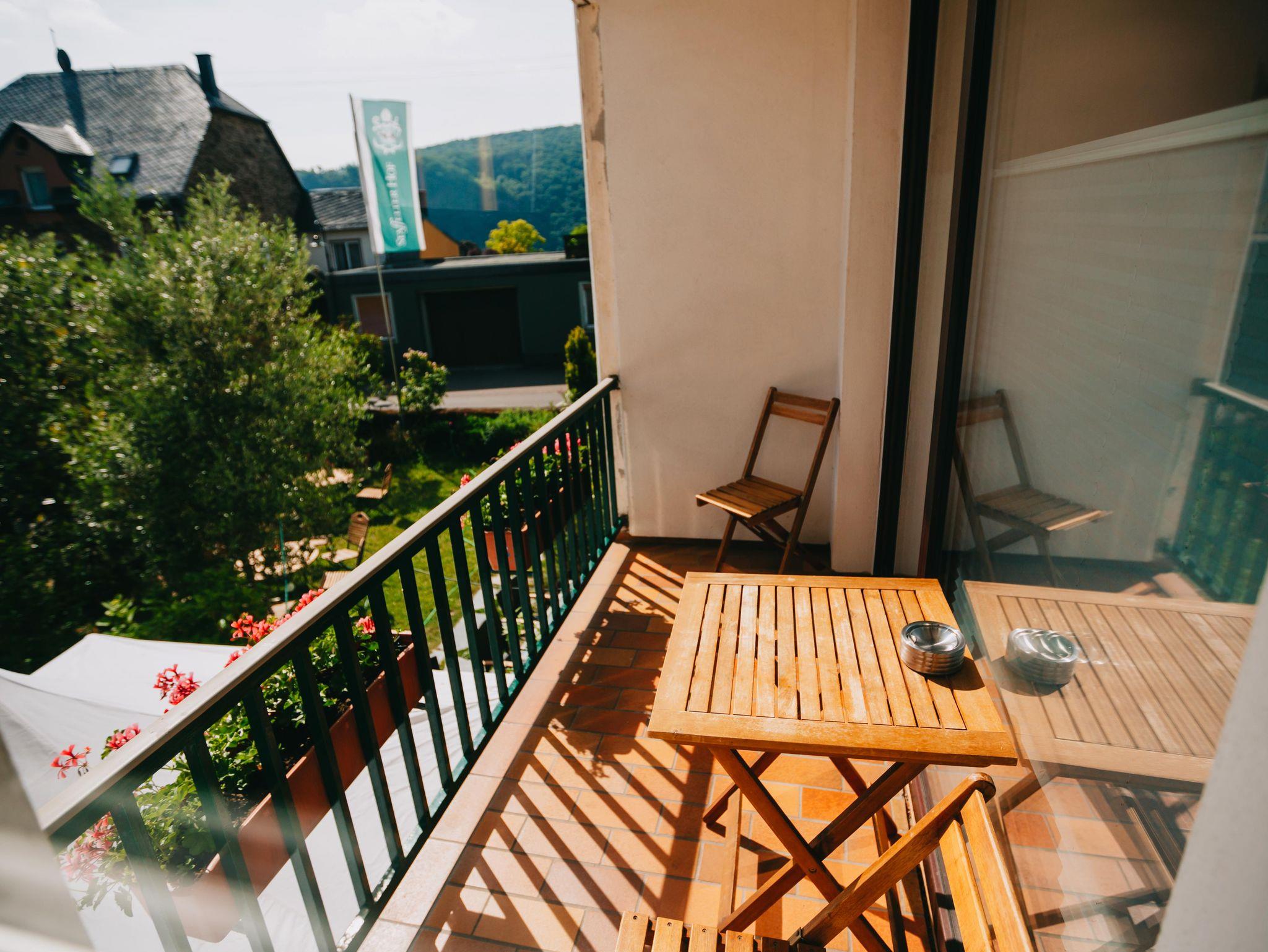 Beton, Rost und Eichenholz bilden den Rahmen für das etwas andere Ambiente: Hier finden einige Stars des Punks, Grunge- und Prog-Rocks ein zu Hause im Staffelter Hof! - Und Ihr findet hier ein luxuriöses Domizil, um dann in die Kulturlandschaft rund um den Hof auszuschwärmen: Zwei Schlafzimmer mit separater Dusche/WC, Küchenzeile mit Ceranfeld, Backofen, Kühlschrank und Spülmaschine, sowie einem Wohnraum mit Doppelschlafcouch. Abgerundet wird dies durch ein Riesenfenster mit Blick in den mediterranen Innenhof.....