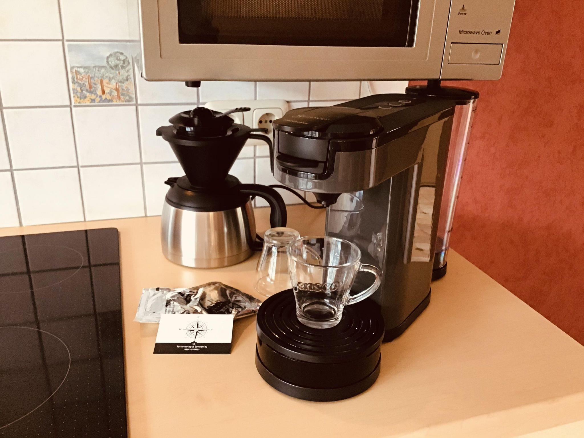 Die 40qm große Feriewohnung auf der 2 Etage hat eine eigene überdachte Terasse auf der sie bei Wind und Wetter die Moselduft genießen können. Im hellen Schlafzimmer befindet sich ein bequemes Boxspringbett. In der vollausgestatteten Küche mit Ceranfeld und Backofen, Mikrowelle und Kühlschrank mit Gefrierfach.