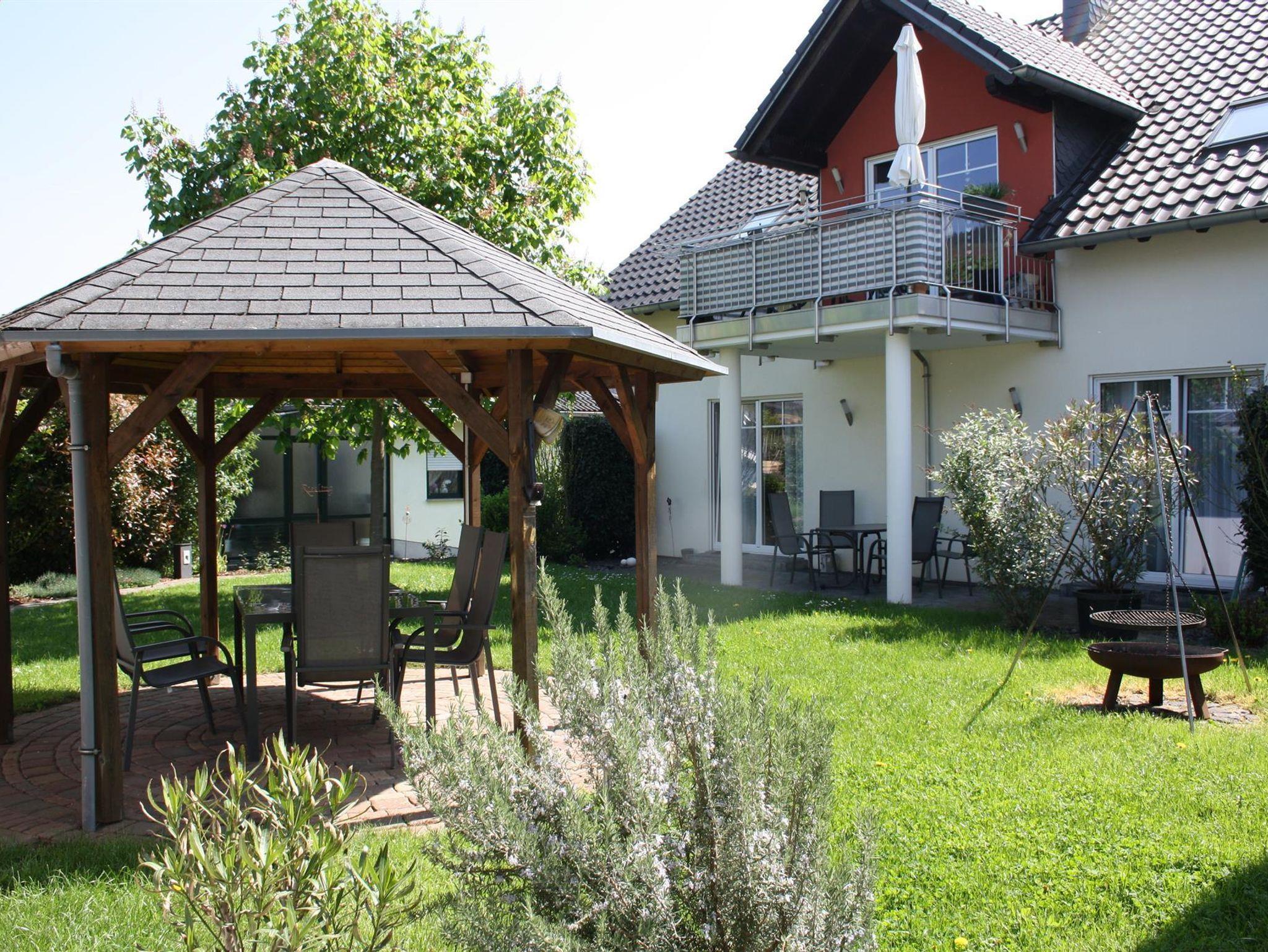 Überdachte Terrasse - ein grüne Oase unter Weinranken und mediterranen Pflanzen | Liegewiese mit Pavillon und Grillplatz | Parkplätze vor unserem Haus | Unterstellmöglichkeit für Ihre Fahrräder