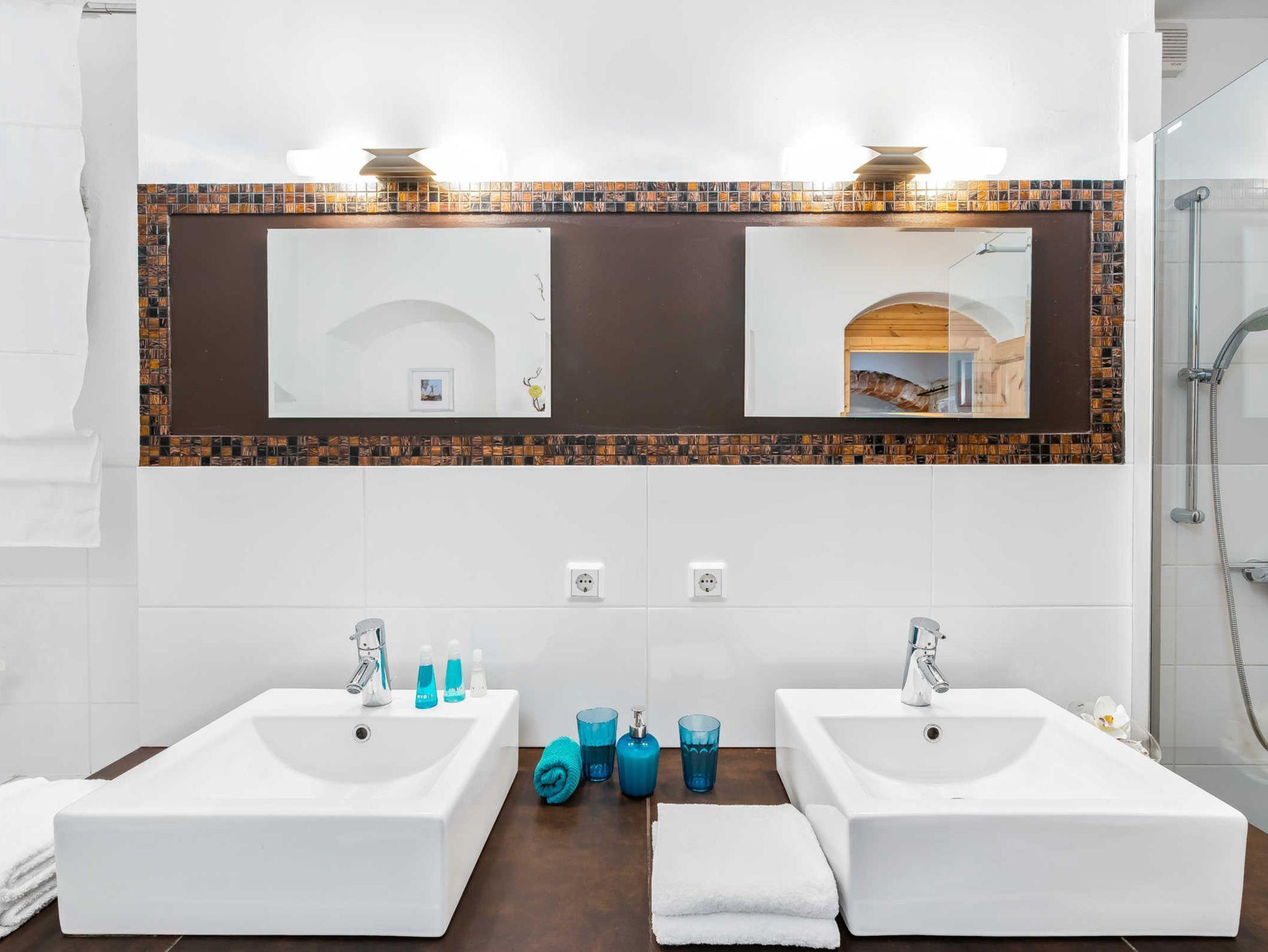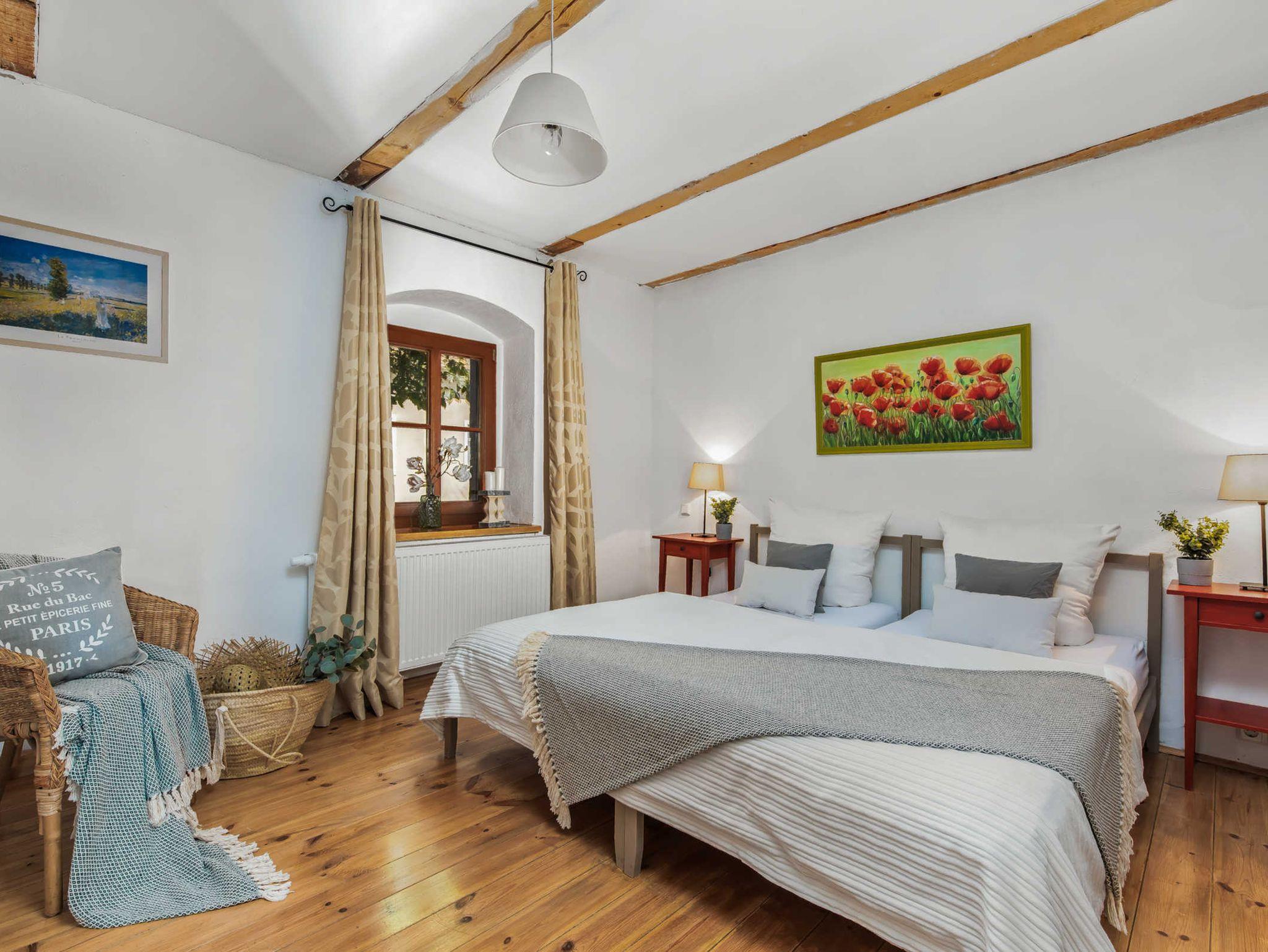 Auf unserem historischen, alten Bauernhof bieten wir Ihnen ein liebevoll restauriertes Ferienhaus an. Sechs Doppelschlafzimmer mit viel Flair und Liebe zum Detail verteilen sich auf 210 m². Im Erdgeschoss befinden sich eine voll ausgestattete Küche und ein Esszimmer für 12 Personen. Das Wohnzimmer verfügt über einen Kamin für romantische Stunden. Drei WCs und zwei großzügige Bäder stehen unseren Gästen zur Verfügung, im Erdgeschoss mit Badewanne, Dusche, Doppelwaschtischen, im Obergeschoss mit Dusche und Doppelwaschtisch.