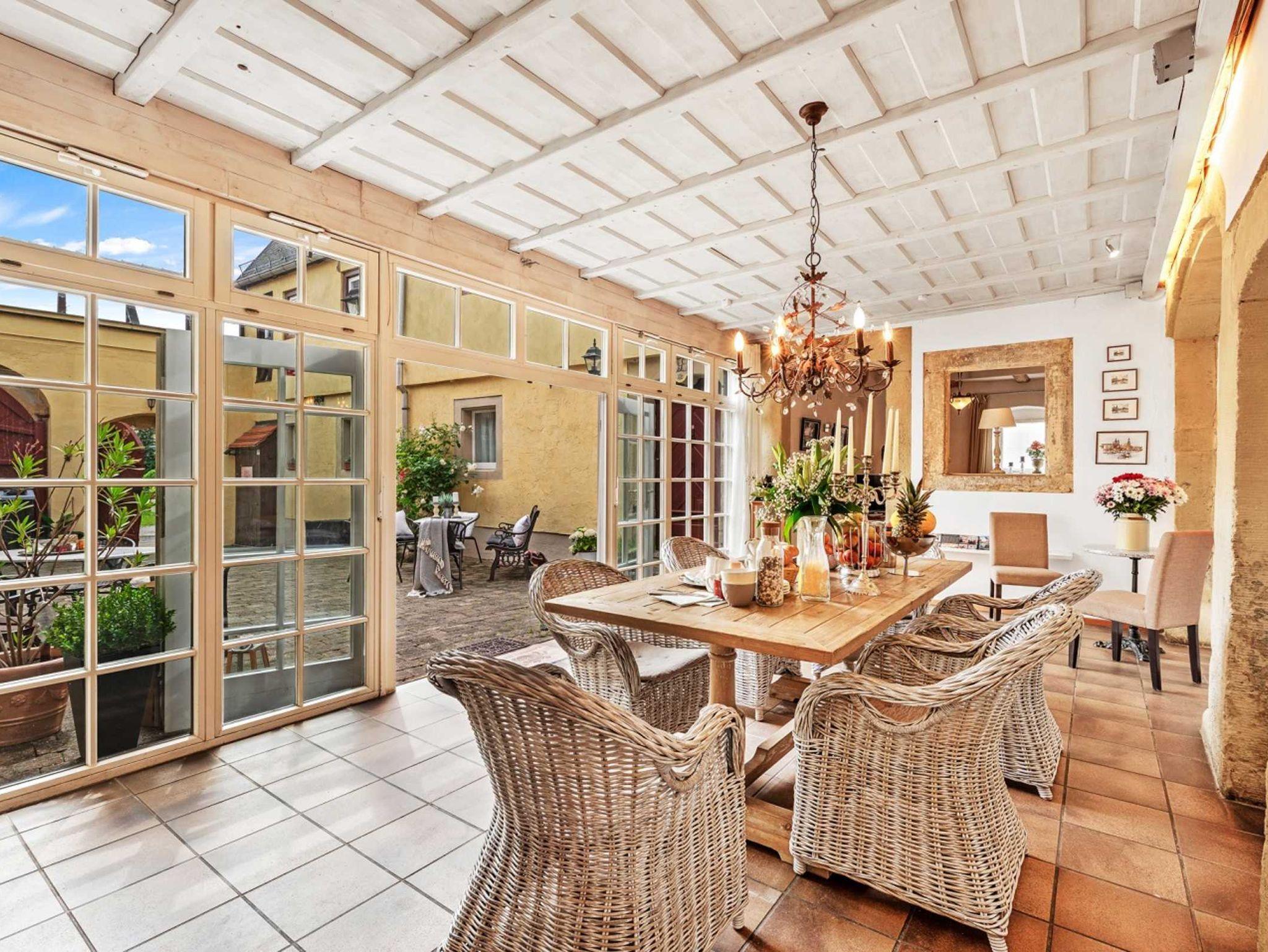 Modernes Ambiente in historischem Dreiseitenhof. Das Haus bietet Platz für 6 Personen (und 2 Kinder). In dem Haus befinden sich drei Doppelschlafzimmer. Erstes DZ im Erdgeschoss mit Boxspringbett - Zweites DZ im Obergeschoss und drittes DZ im Dachgeschoss mit Schräge. Im Obergeschoss gibt es im Flur einen kleinen Alkoven mit einem Stockbett für 2 Kinder. Im Erdgeschoss befinden sich eine voll ausgestattete Küche, ein geräumiges Esszimmer im Wintergarten mit Blick in den Innenhof. Im Wohnzimmer mit TV befindet sich ein Kaminofen für gemütliche Stunden.