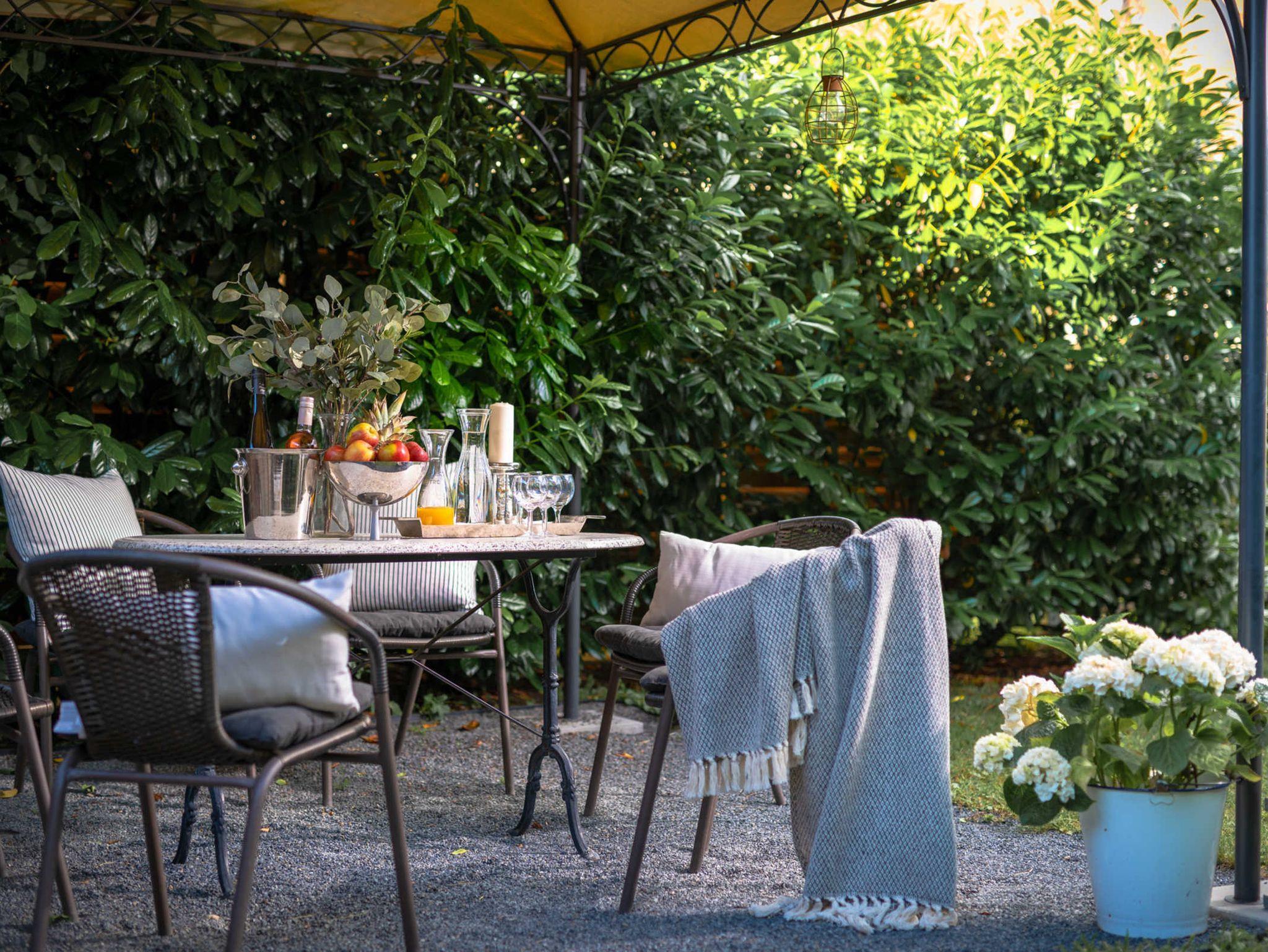 Das Haus Sofie hat eine Terrasse im Innenhof und eine weitere Terrasse im Garten mit gemütlichen Sitzmöbeln.