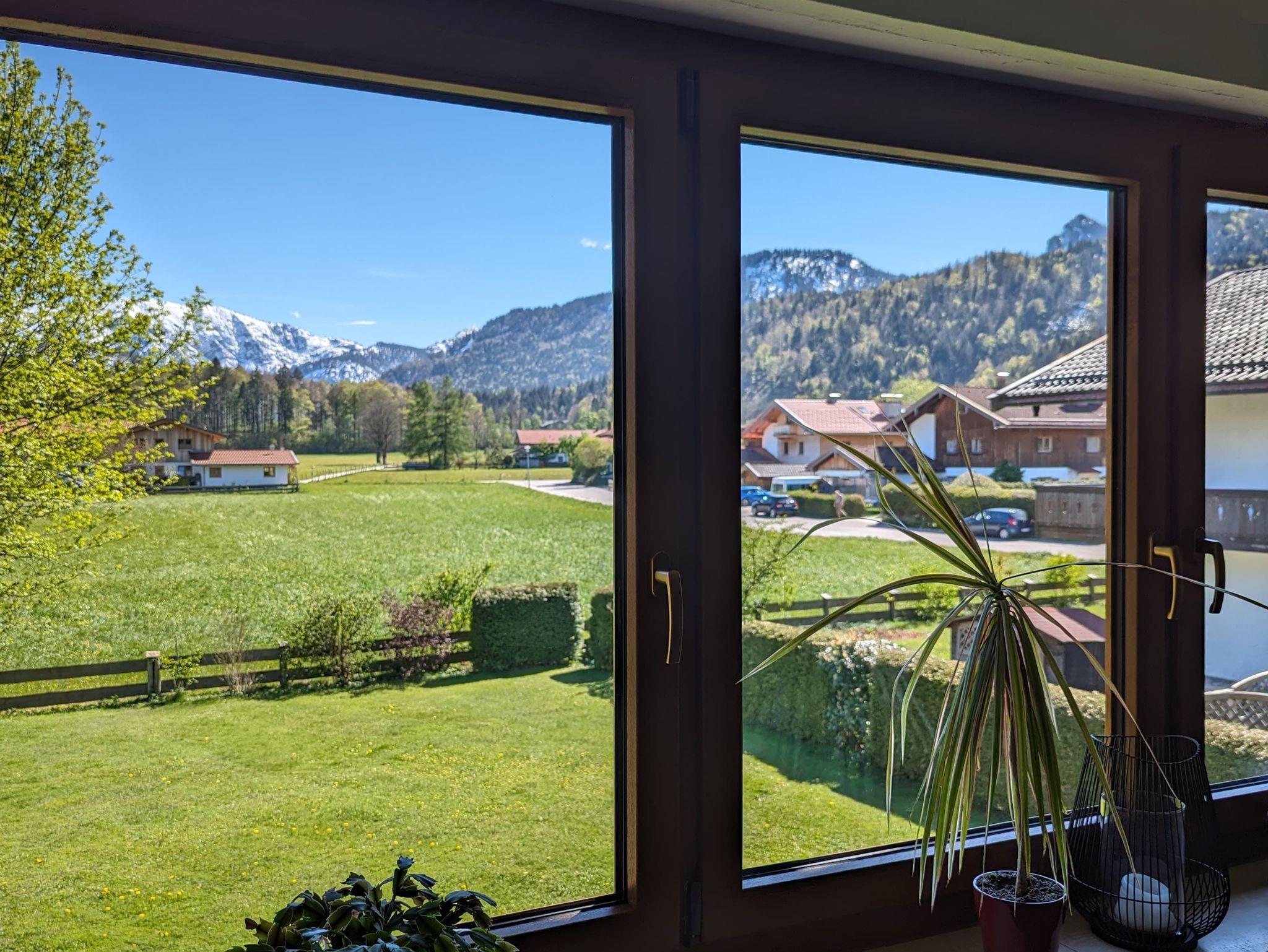 Die hell und gemütlich eingerichtete Wohnung hat eine Wohnfläche von ca. 95 qm. Sie befindet sich im 1. Geschoss unseres freistehenden Zweifamilienhauses und besteht aus einem großen und hellen Wohnzimmer (26 qm) mit Essecke in Südlage, zwei geräumigen Schlafzimmern (24 und 17 qm), einer vollständig eingerichteten Küche (8qm), einem Bad mit barrierefreier Dusche und WC (8qm) sowie einem separaten WC und einer großen Diele, von der alle Räume den Zugang haben. Von dem ca. 10 qm großen Südbalkon mit Zugang vom Schlafzimmer und Wohnzimmer, haben Sie einen traumhaften Blick in die Berge. Das Wohnzimmer ist mit Essecke sowie einer Couch und zwei Sesseln ausgestattet. Die Sitzmöbel sind mit hochwertigem Leder beziehungsweise Velour bezogen. Eine Leseecke mit einer vielfältigen Bücherauswahl lädt zum Lesen ein. Eine größere Auswahl von Gesellschaftsspielen animieren zu gemeinsamen Spieleabenden. Ein 50 Zoll SAT-Flachbild-TV garantiert ein TV-Erlebnis. Ein Digitalradio mit CD-Player runden das Unterhaltungsangebot ab. Das große Schlafzimmer ist mit einem Doppelbett mit einer Größe von 2 x 2 m ausgestattet. Dicke Taschentonnenfederkernmatratzen garantieren einen erholsamen Schlaf. In dem großen Schwebetüren-Kleiderschrank wird ihre Kleidung genügend Platz haben. Das hochwertige Kirschbaumholz der Schlafzimmermöbel runden das Ambiente des Zimmers ab. Das zweite Schlafzimmer hat zwei Einzelbetten mit einer Größe von 2 x 1 m. Beide Schlafzimmer sind ebenfalls mit einem SAT-Flachbild-TVs ausgestattet. Die Küche ist komplett ausgestattet und enthält folgende Elektrogeräte: Kühlschrank mit separatem Gefrierschrank, Cerankochfeld und Heißluftbackofen, Dunstabzughaube, Spülmaschine, Kaffeemaschine, Kaffee-Pad-Maschine (Senseo), Wasserkocher, Toaster, Eierkocher, Handrührgerät und Elektromesser. Bei Bedarf steht eine Microwelle zur Verfügung. Die Schränke beinhalten genügend Geschirr, Gläser, Töpfe, Pfannen und diverse Kochutensilien. Geschirr- und Spültücher sowie Spülmittel sind ebenfalls vorhanden. Der SODA-STREAMER rundet die Kücheneinrichtung ab. Kreuth ? Scharling hat ein vorzügliches Quellwasser, so dass getrost auf gekauftes Mineralwasser verzichtet werden kann. Damit kommen wir auch wieder ein Stück mehr dem Nachhaltigkeitsgedanken entgegen. Das Badezimmer ist mit einer großen barrierefreien Dusche 1 x 1,20 m, einem WC sowie einem Waschbecken mit Spiegel und einem Badezimmerschrank ausgestattet. Im Badezimmerschrank befinden sich ausreichend Hand- und Duschtücher, Duschvorleger, ein Haarfön und ein Kosmetikspiegel. Zusätzlich steht noch ein separates WC zur Verfügung. Ein schnelles W-LAN ist vorhanden. Unser Haus wird als Nichtraucherhaus geführt. Damit auch Allergiker die Wohnung buchen können, haben wir uns dazu entschieden keine Haustiere aufzunehmen. Zum Relaxen steht Ihnen eine Liegewiese mit herrlichem Panoramablick zum Hirschberg, den Ringberg mit dem Ringbergschloss und den Wallberg zur Verfügung. Für 2 Fahrräder oder Ihre Skiausrüstung sind Abstellmöglichkeiten vorhanden. Ein kostenloser Parkplatz für Ihr Fahrzeug befindet sich auf unserem Grundstück.